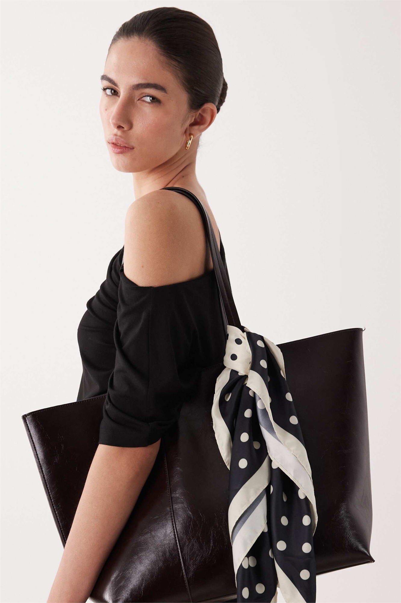 Атласный шарф-мешочек в горошек