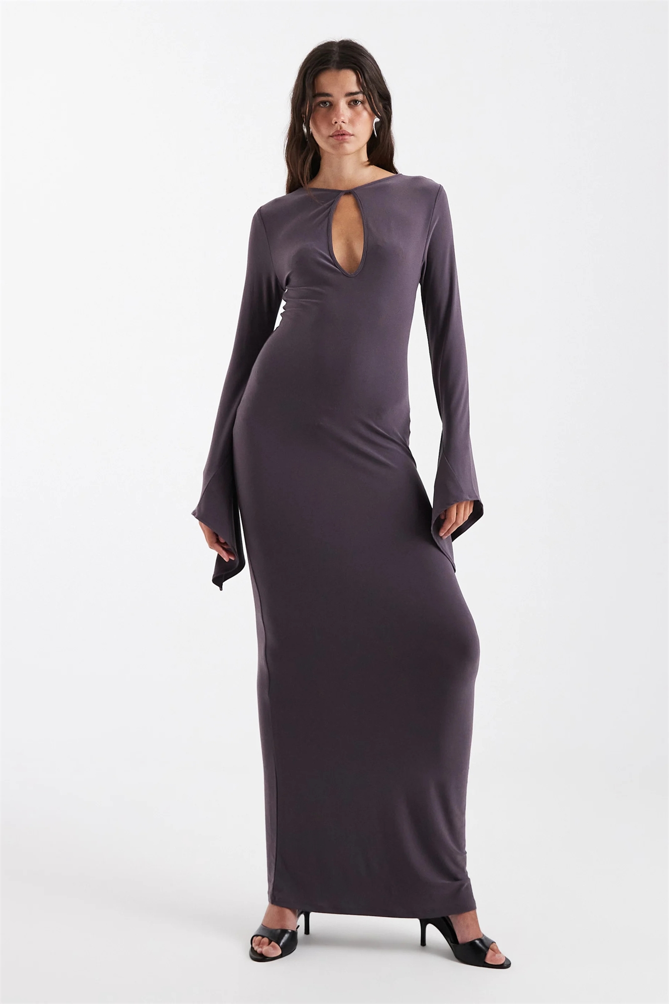 Макси-платье с асимметричными рукавами «ангел»