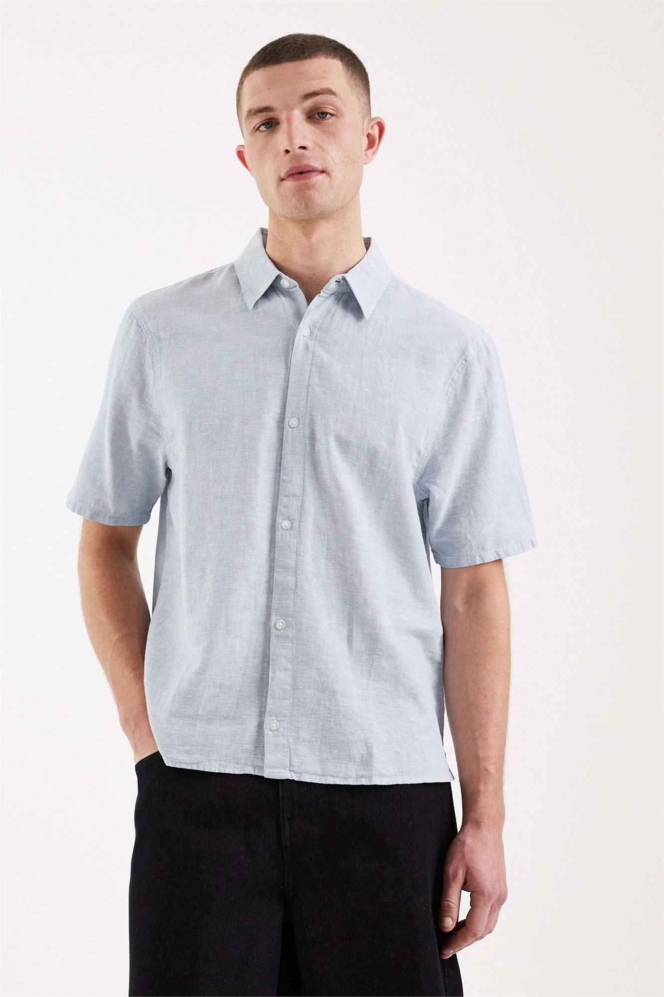 Рубашка с короткими рукавами из смесовой ткани с добавлением льна