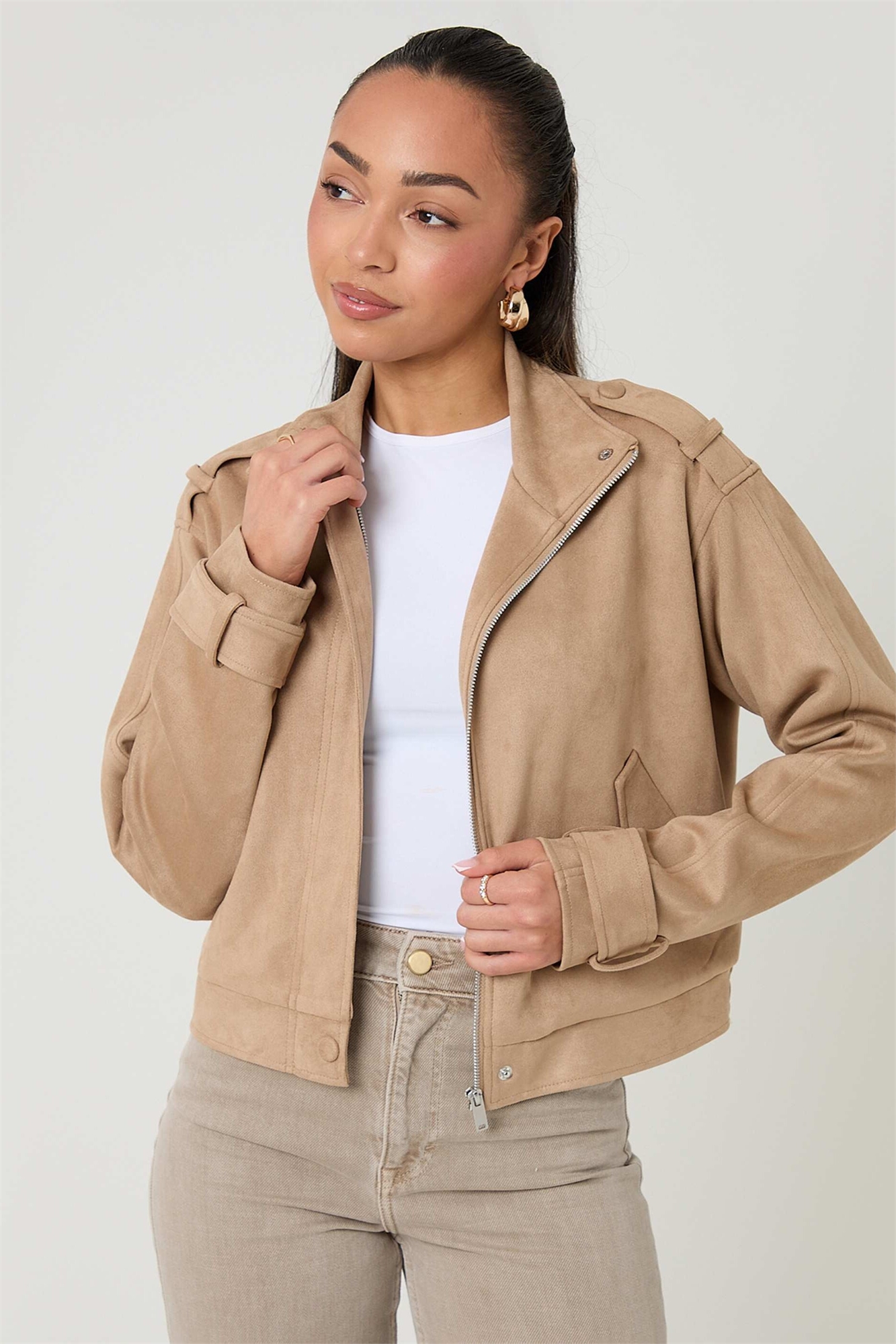 Бомбер из искусственной замши с воротником-воронкой
