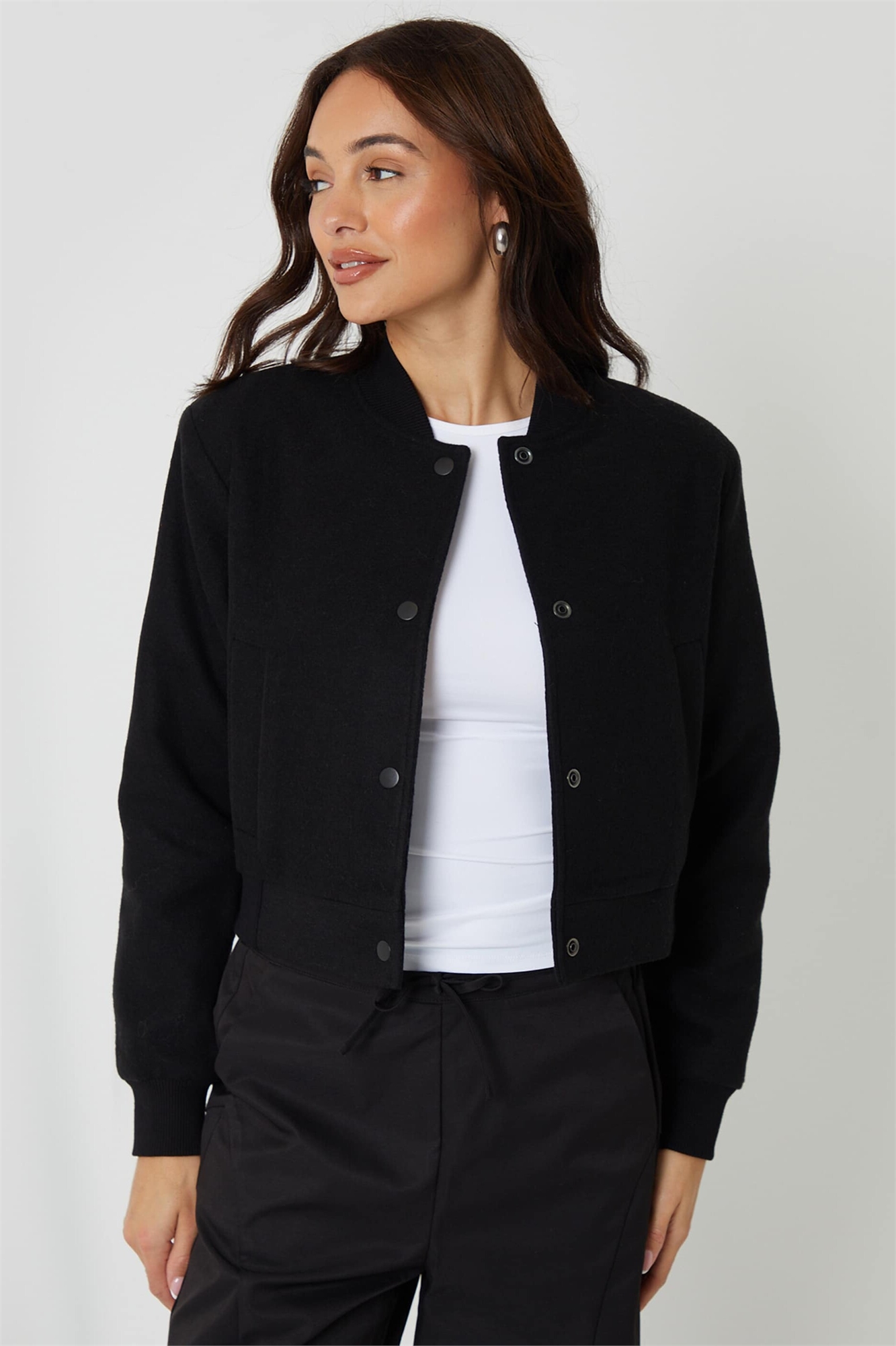 Бомбер из искусственной шерсти черного цвета