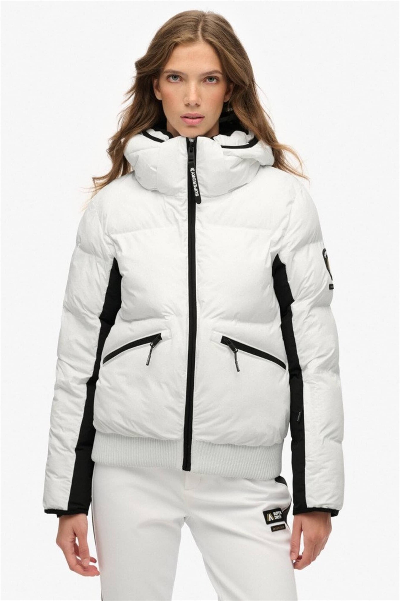 Лыжная куртка-бомбер с капюшоном в оптическом стиле