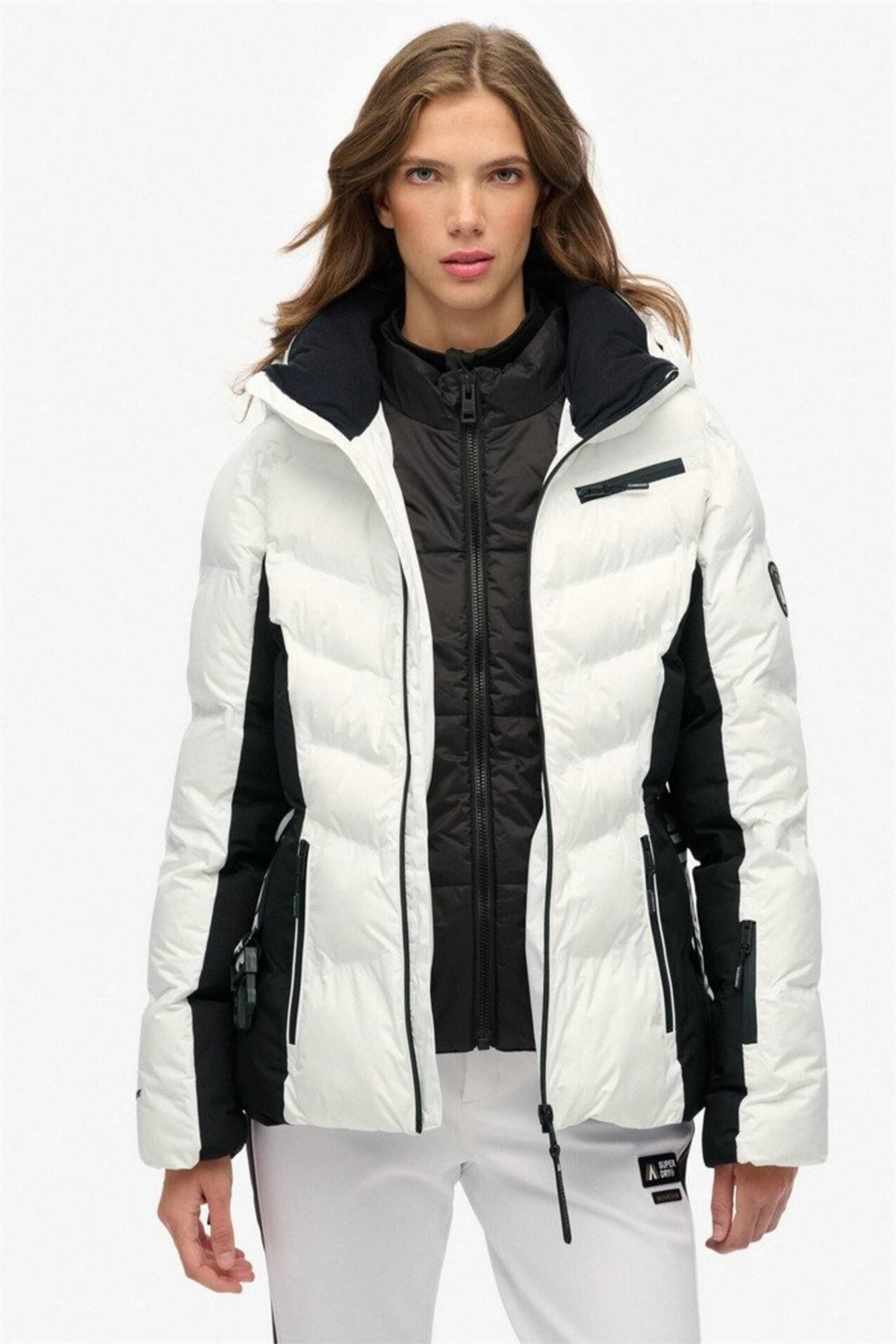 Роскошная утепленная куртка для катания на лыжах с поясом в оптическом стиле