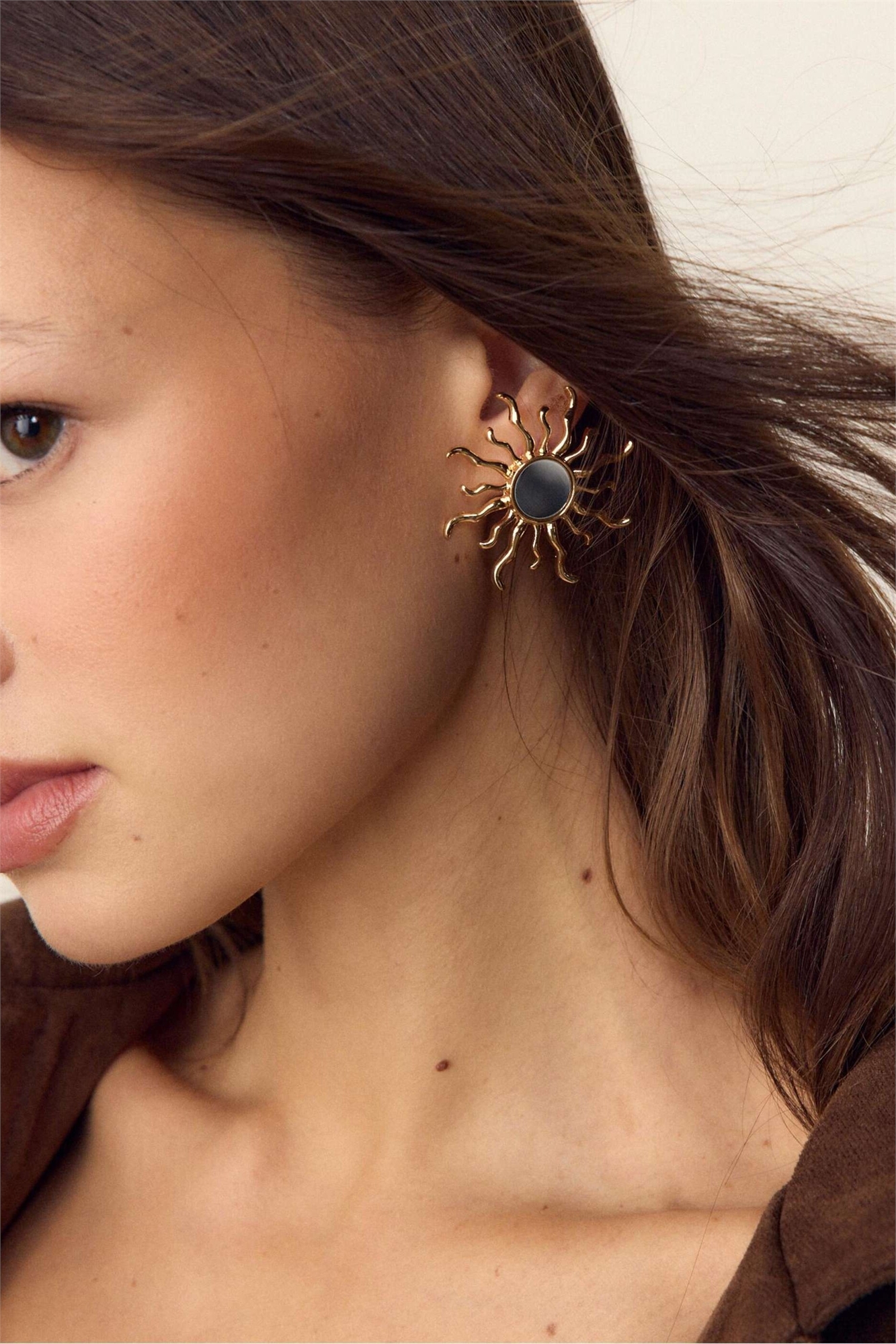Серьги «Зеркальный эффект» с солнечным мотивом, золотые