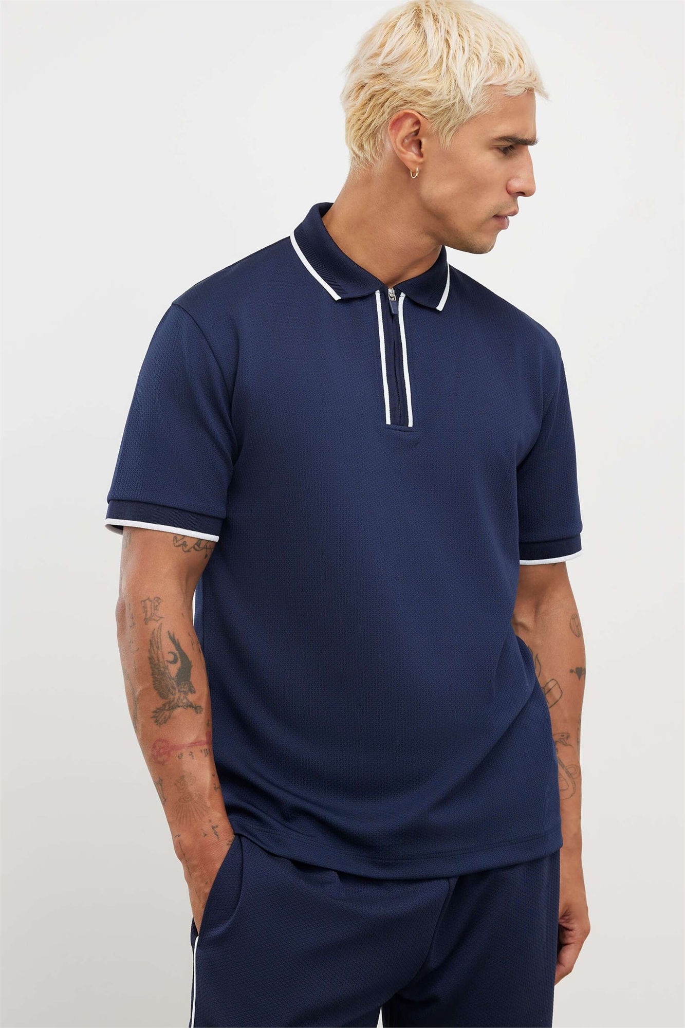 Полурубашка с застежкой-молнией и фактурной отделкой, приталенный крой