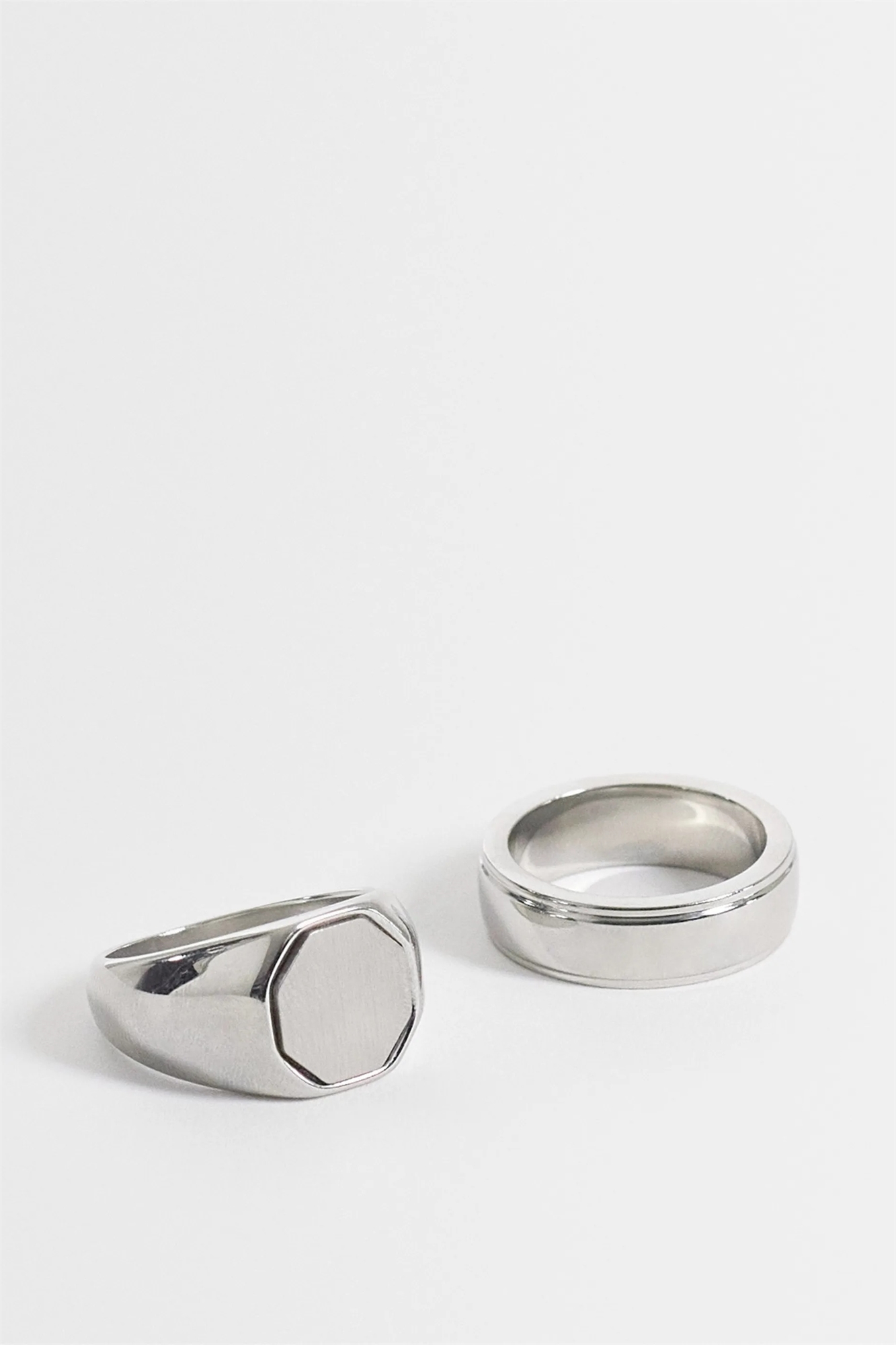 Водонепроницаемый перстень из нержавеющей стали с матовой восьмиугольной верхней частью, комплект из 2 штук