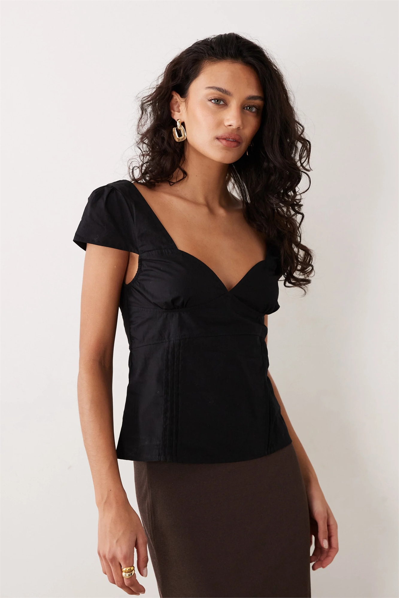 Топ из поплина с короткими рукавами и оливковым цветом