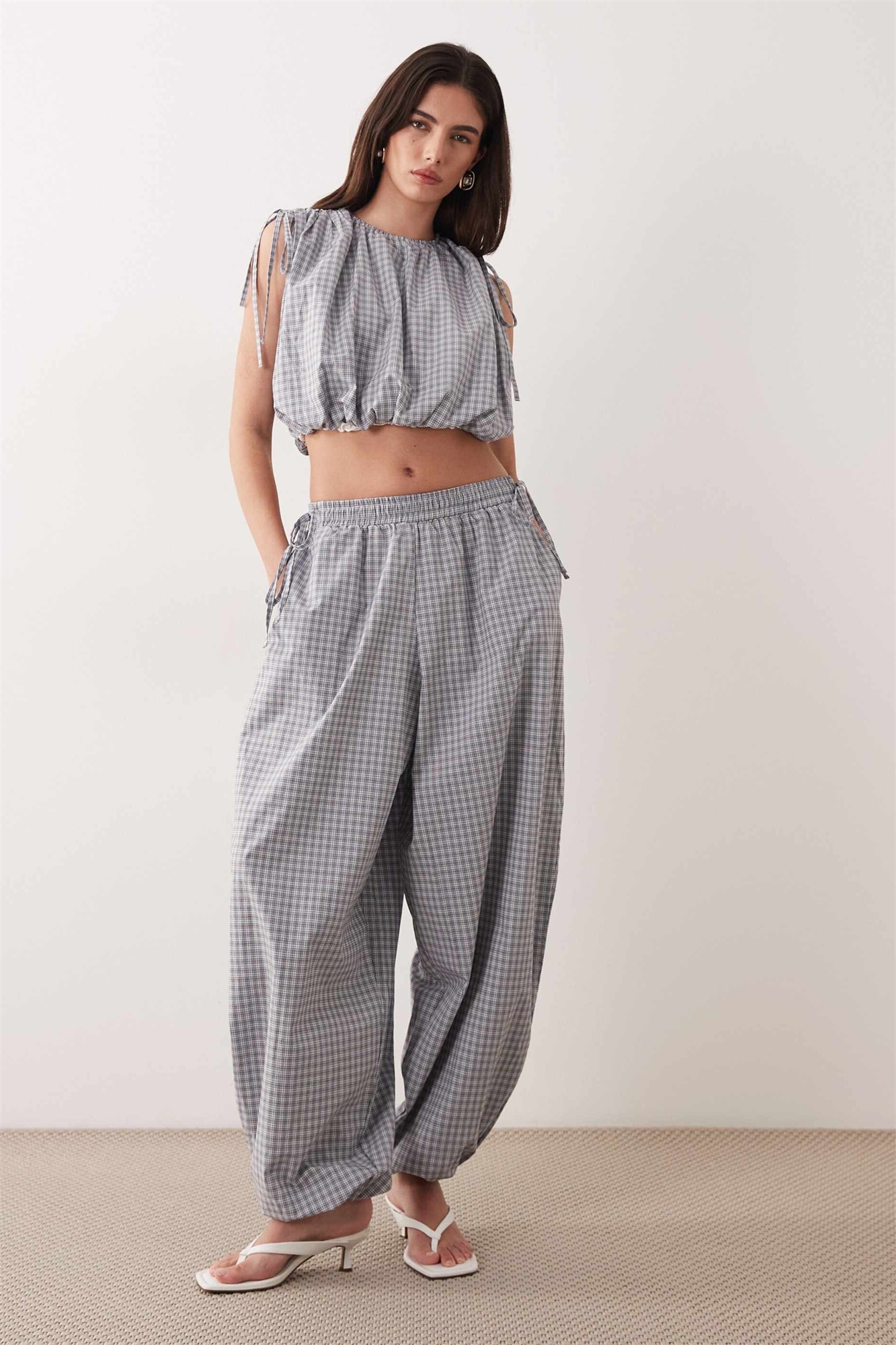 Брюки-балоны с эластичным поясом и завязками по бокам co-ord