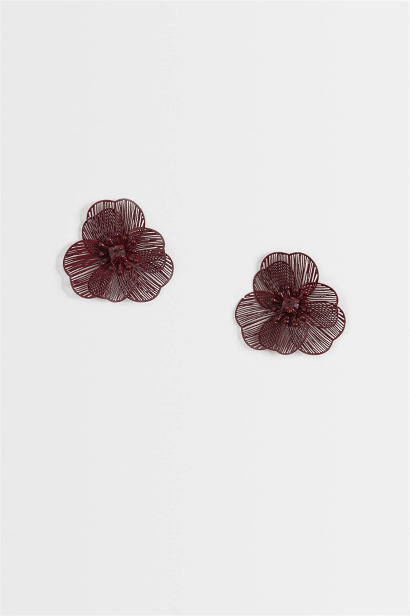 Небольшие серьги-гвоздики с миниатюрным цветочным узором из проволоки