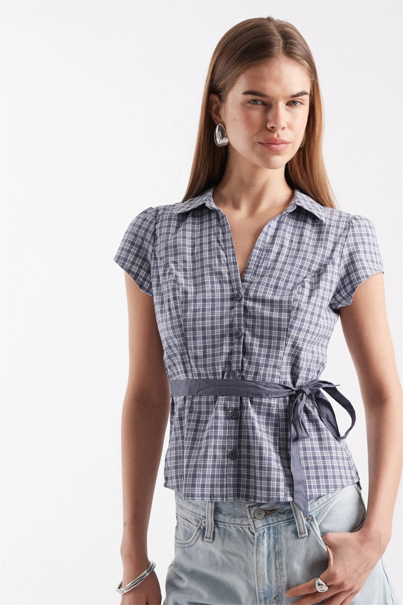 Рубашка с коротким рукавом и бантиком на поясе