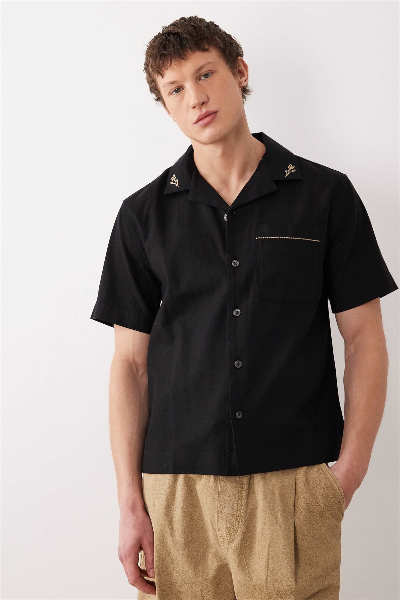 Трикотажная рубашка с короткими рукавами из смеси хлопка и льна