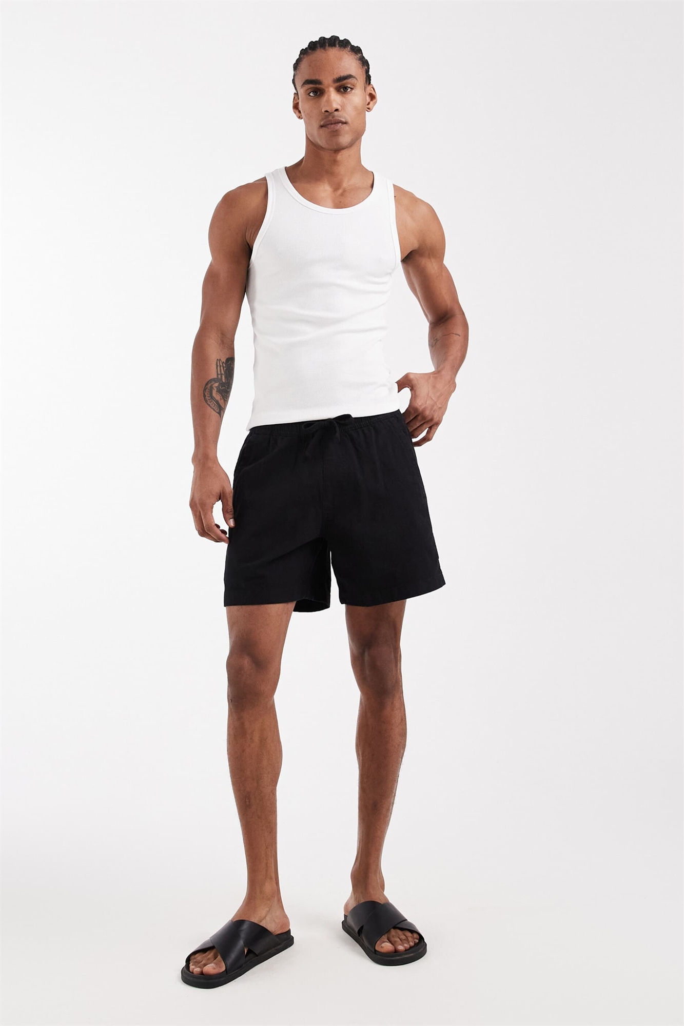 Основной материал: 75% хлопок, 22% лен, 3% эластан, карман: 100% хлопок.