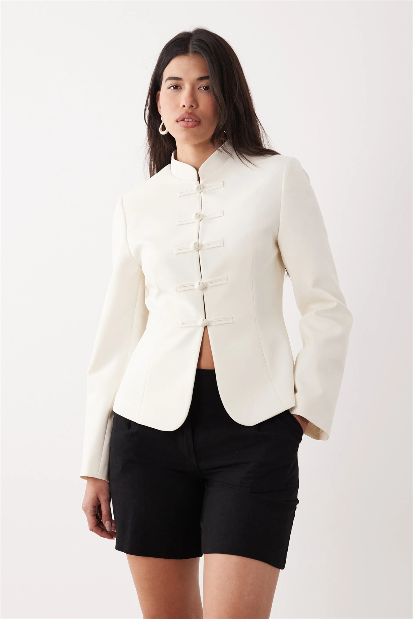Блейзер с затянутым воротником-мандарином