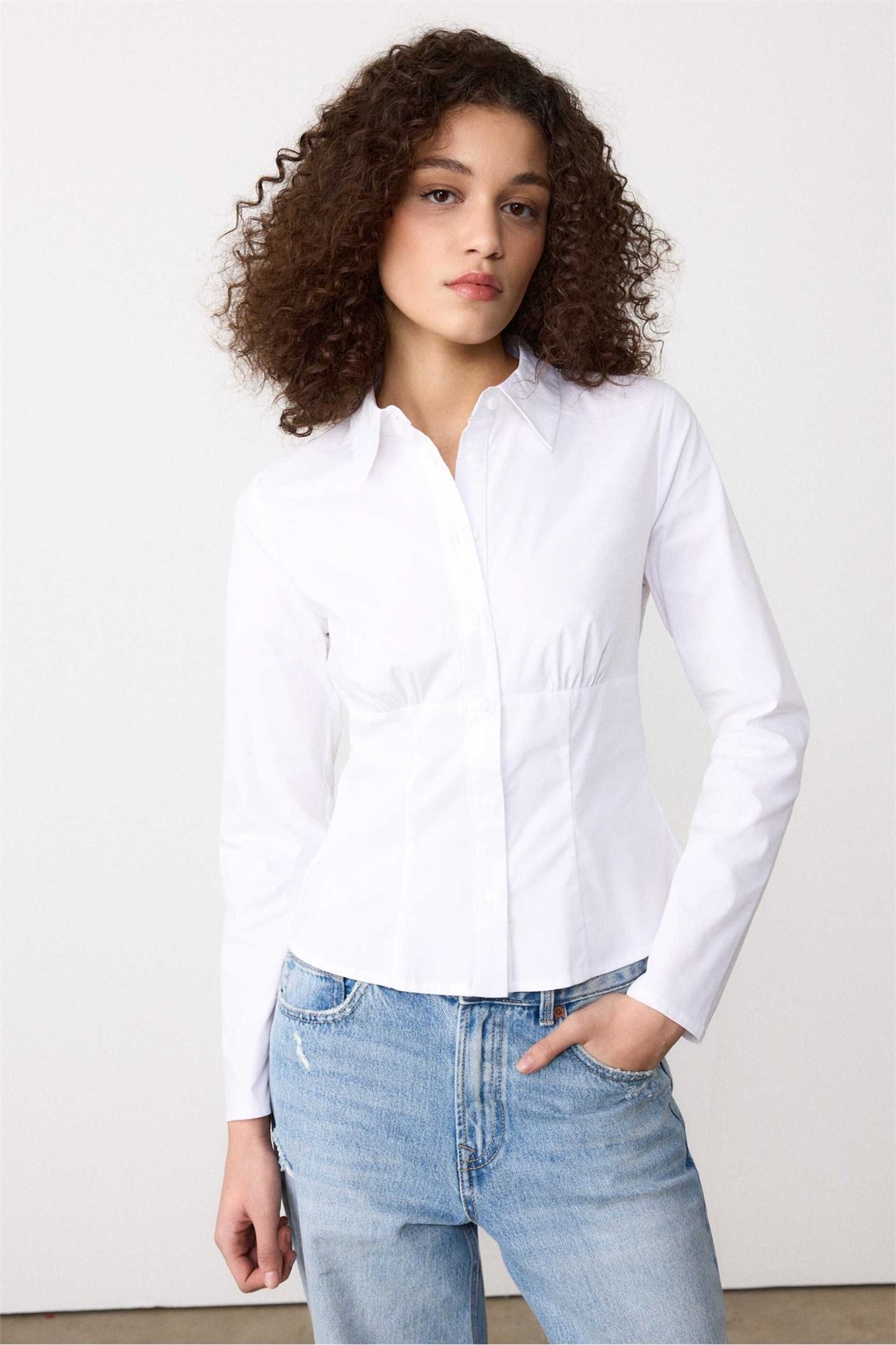 Рубашка приталенного кроя с швом под грудью
