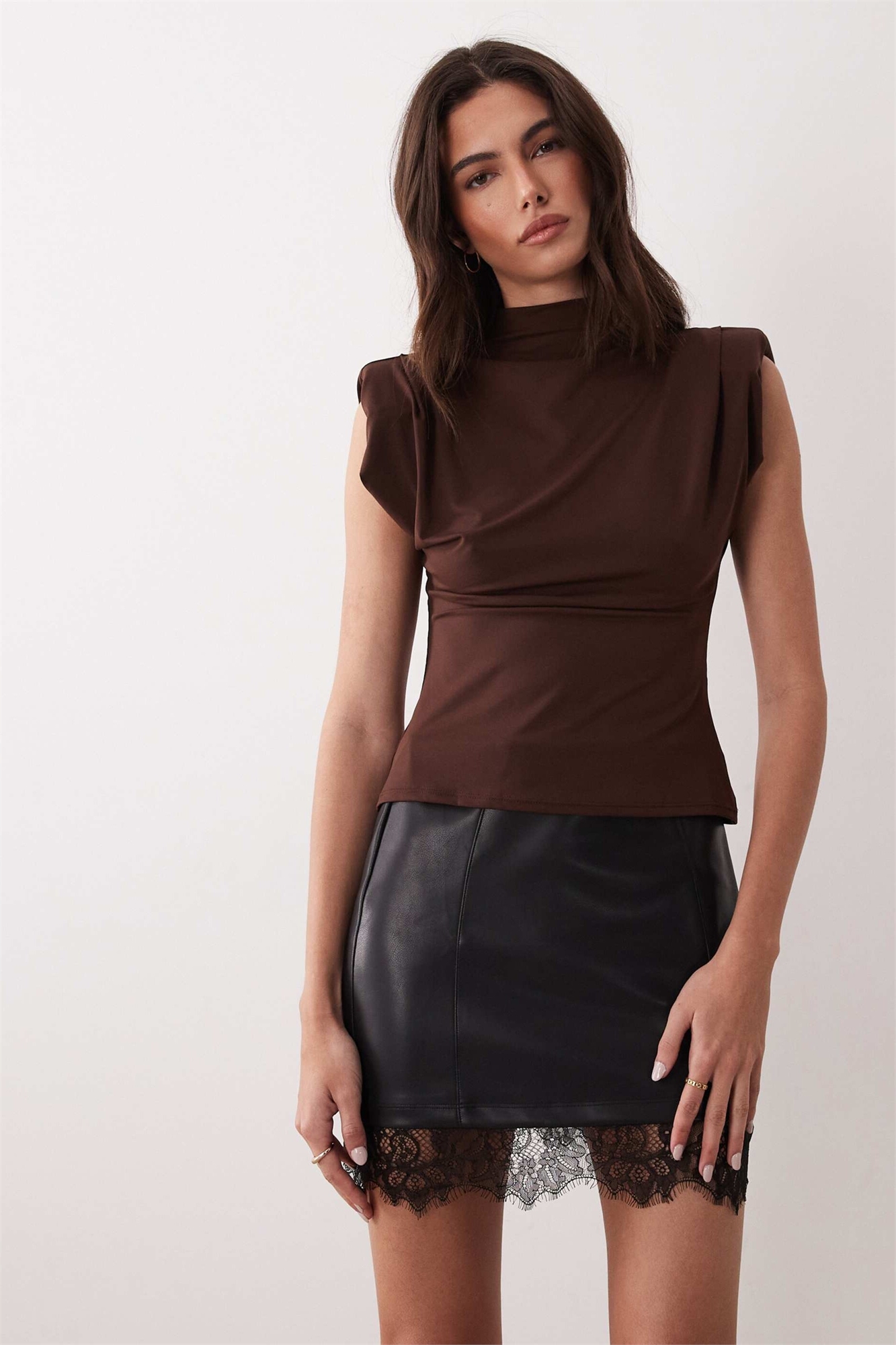 Мини-юбка из полиуретана с кружевным подолом