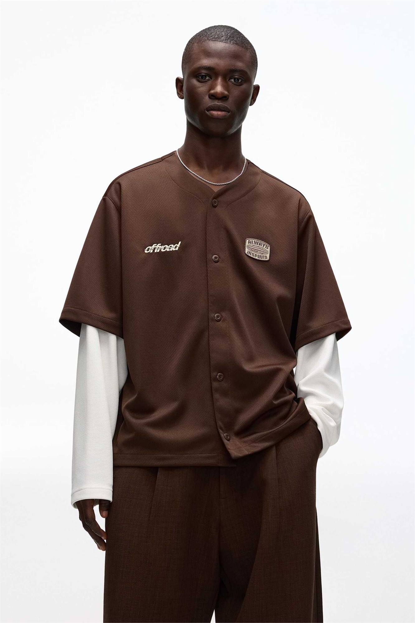 Рубашка прямого кроя с двойными рукавами и вышивкой