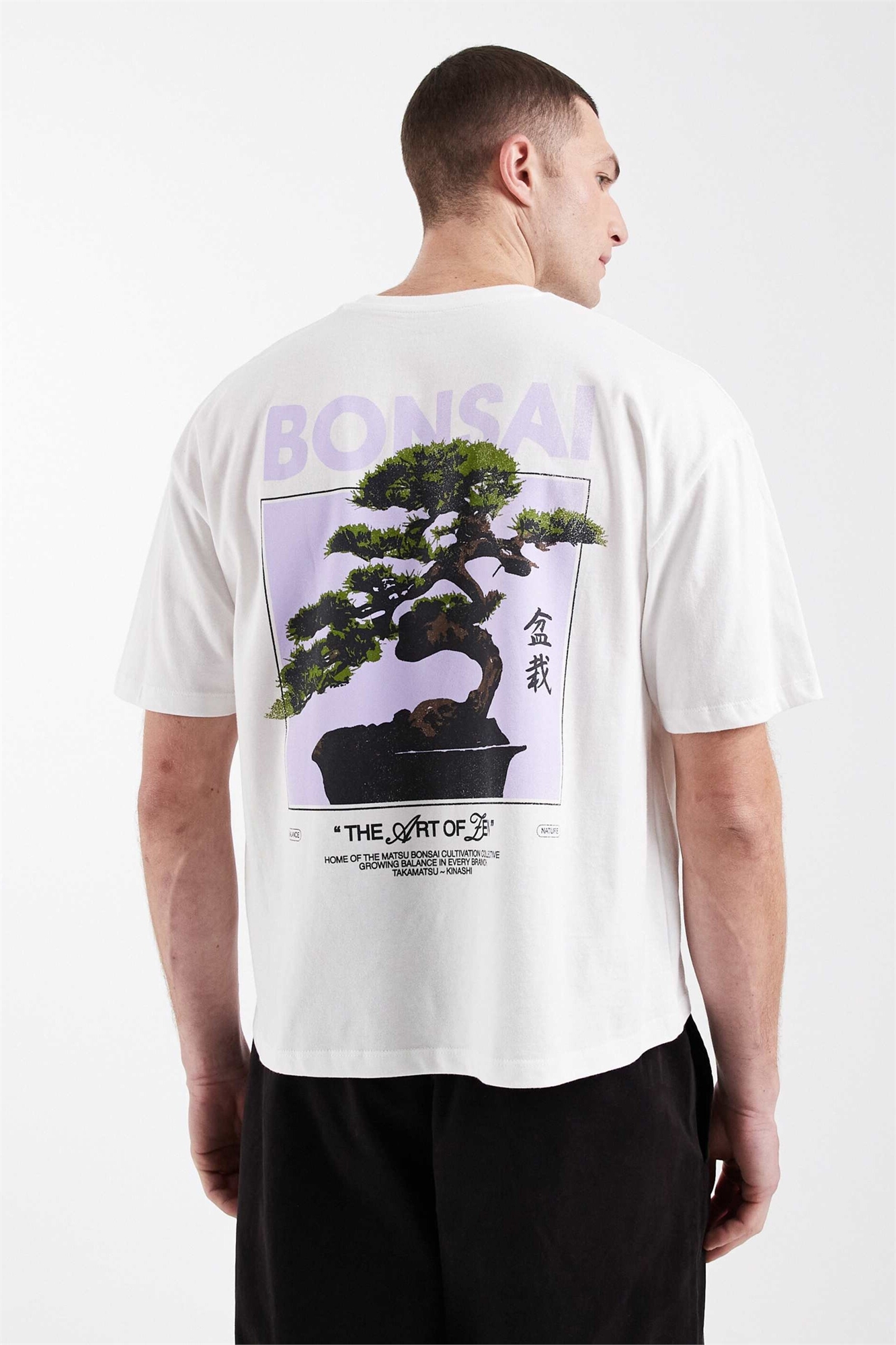 Объёмная футболка свободного кроя с принтом в виде бонсай