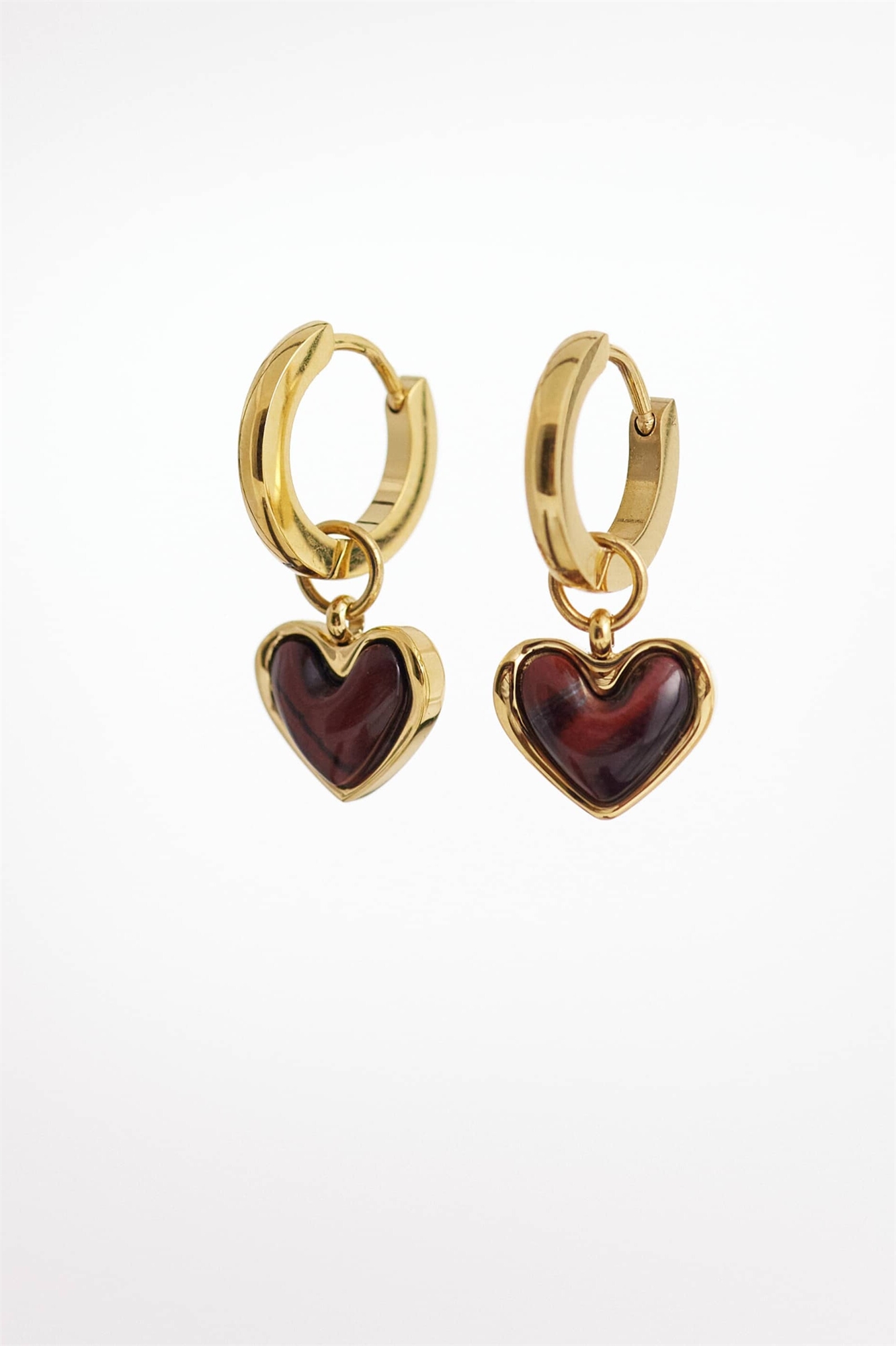 Серьги-кольца «Хугги» в форме сердца с камнем «тигровый глаз»