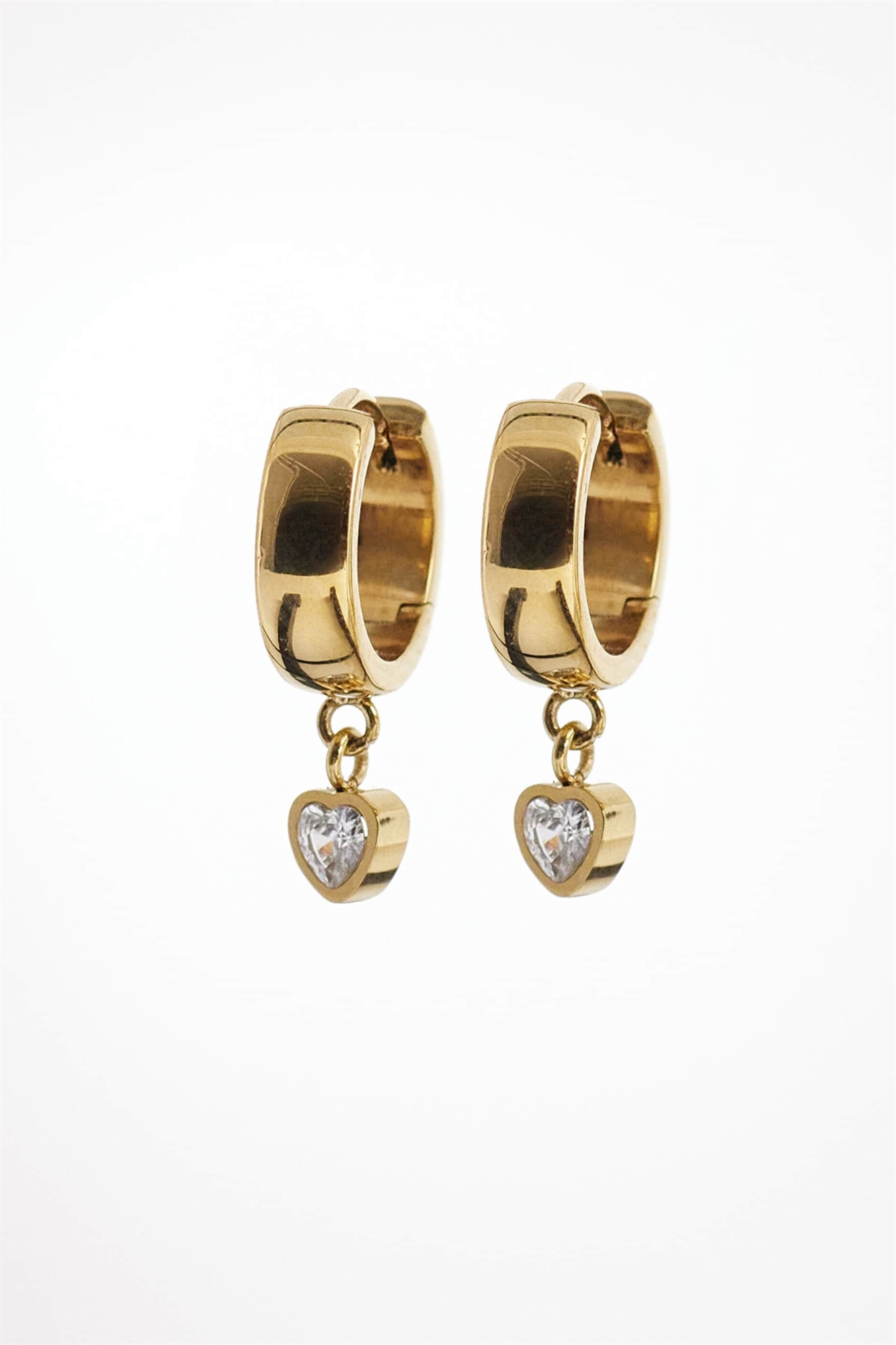 Миниатюрные серьги-кольца с кристаллами в форме сердечка