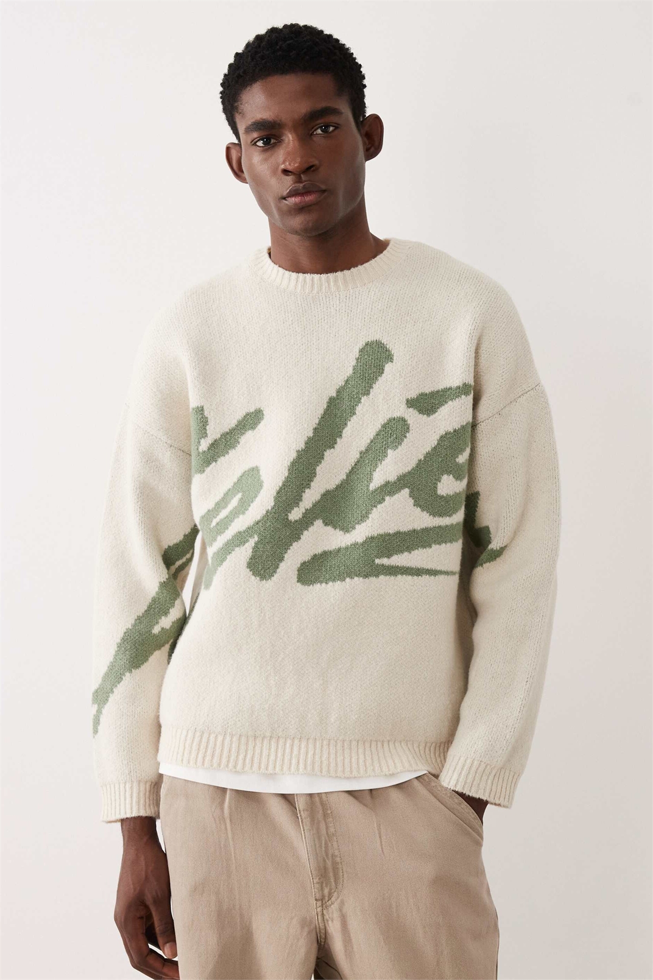 Объемный вязаный свитер с принтом «atelier»