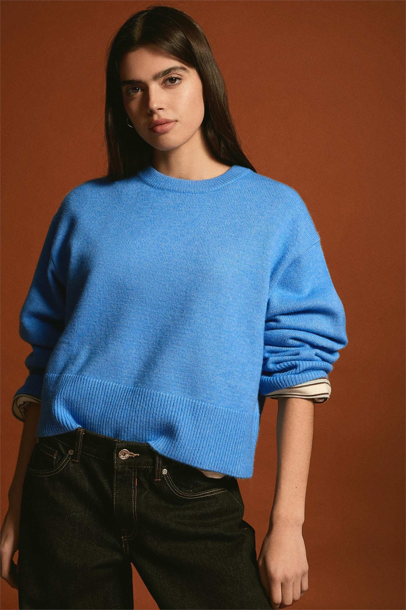Свитер свободного кроя с ребристым подолом