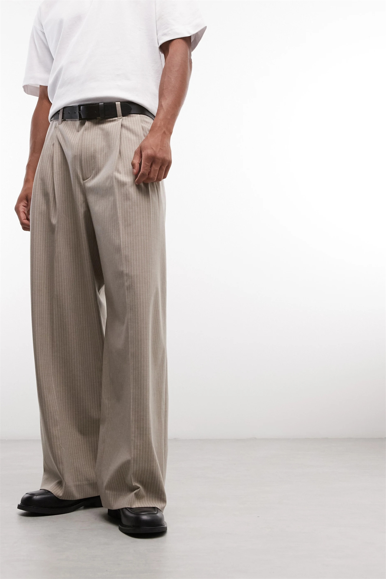 Брюки классического кроя с широкими брючинами и складками спереди