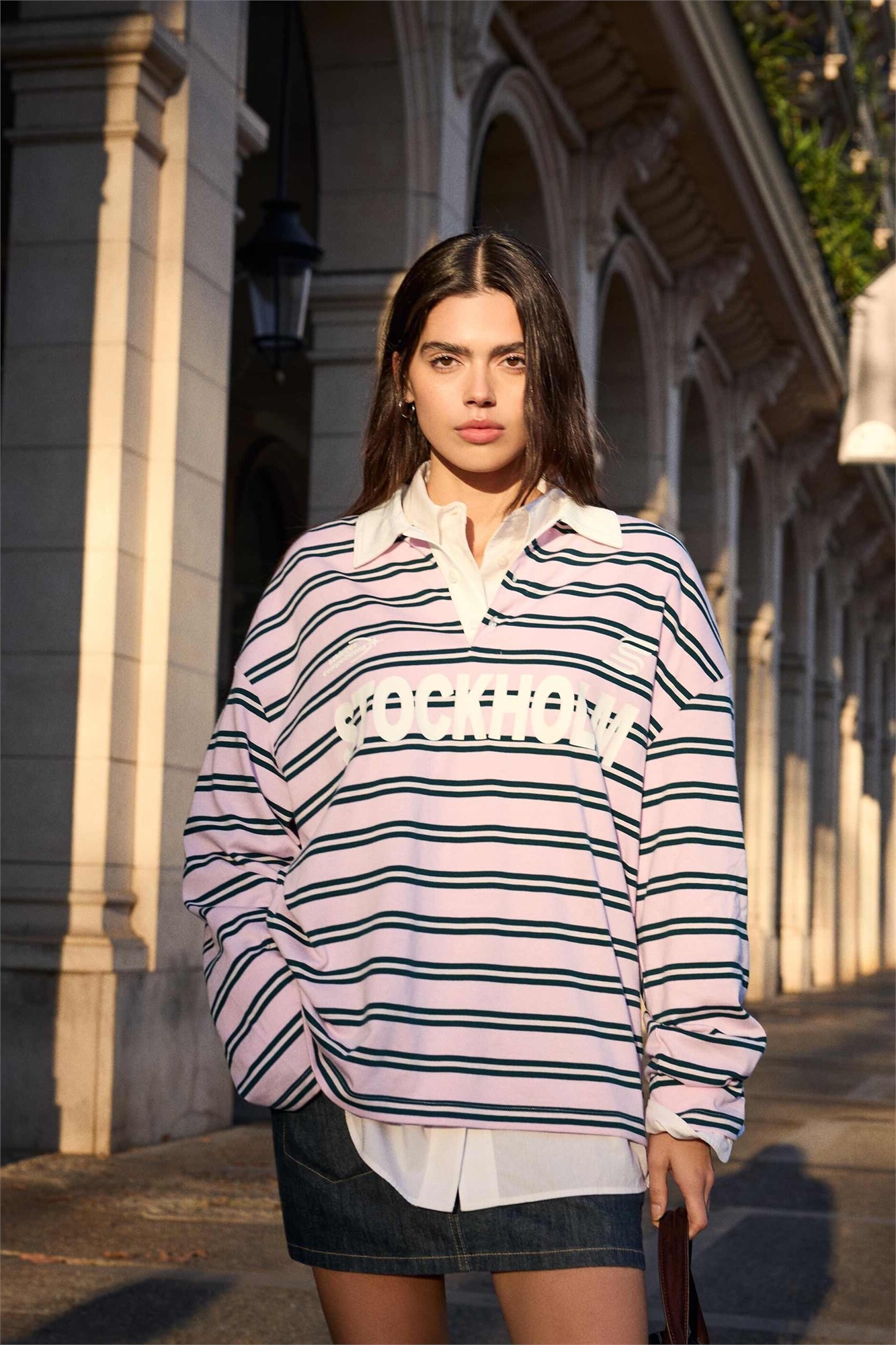 Футболка с длинным рукавом и воротником-поло с принтом