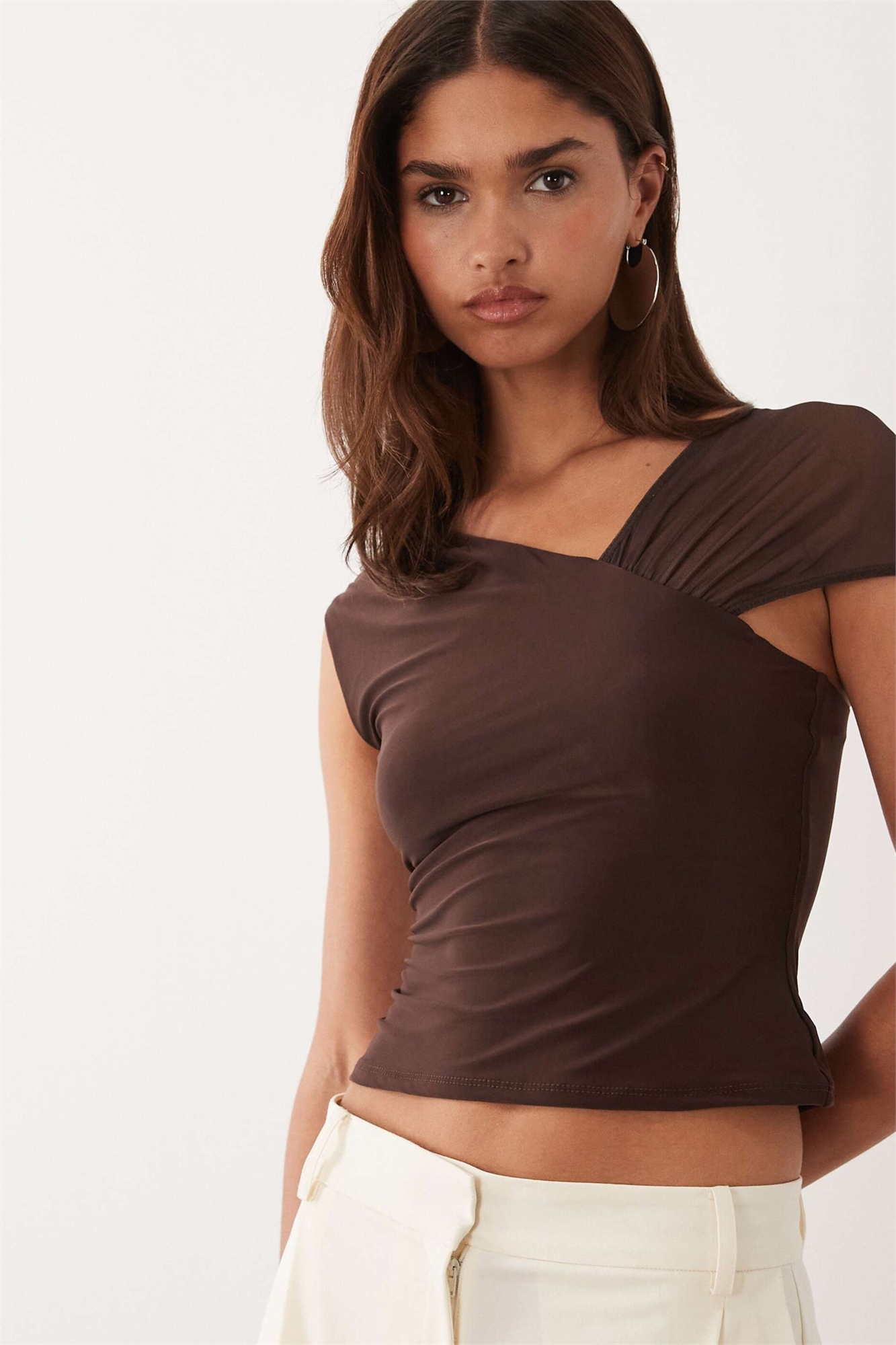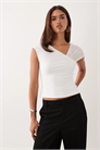 Обтягивающий топ с сетчатыми вставками на плечах