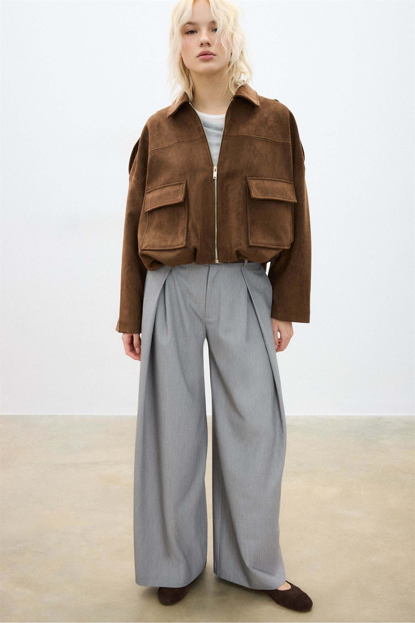 Бомбер из искусственной замши