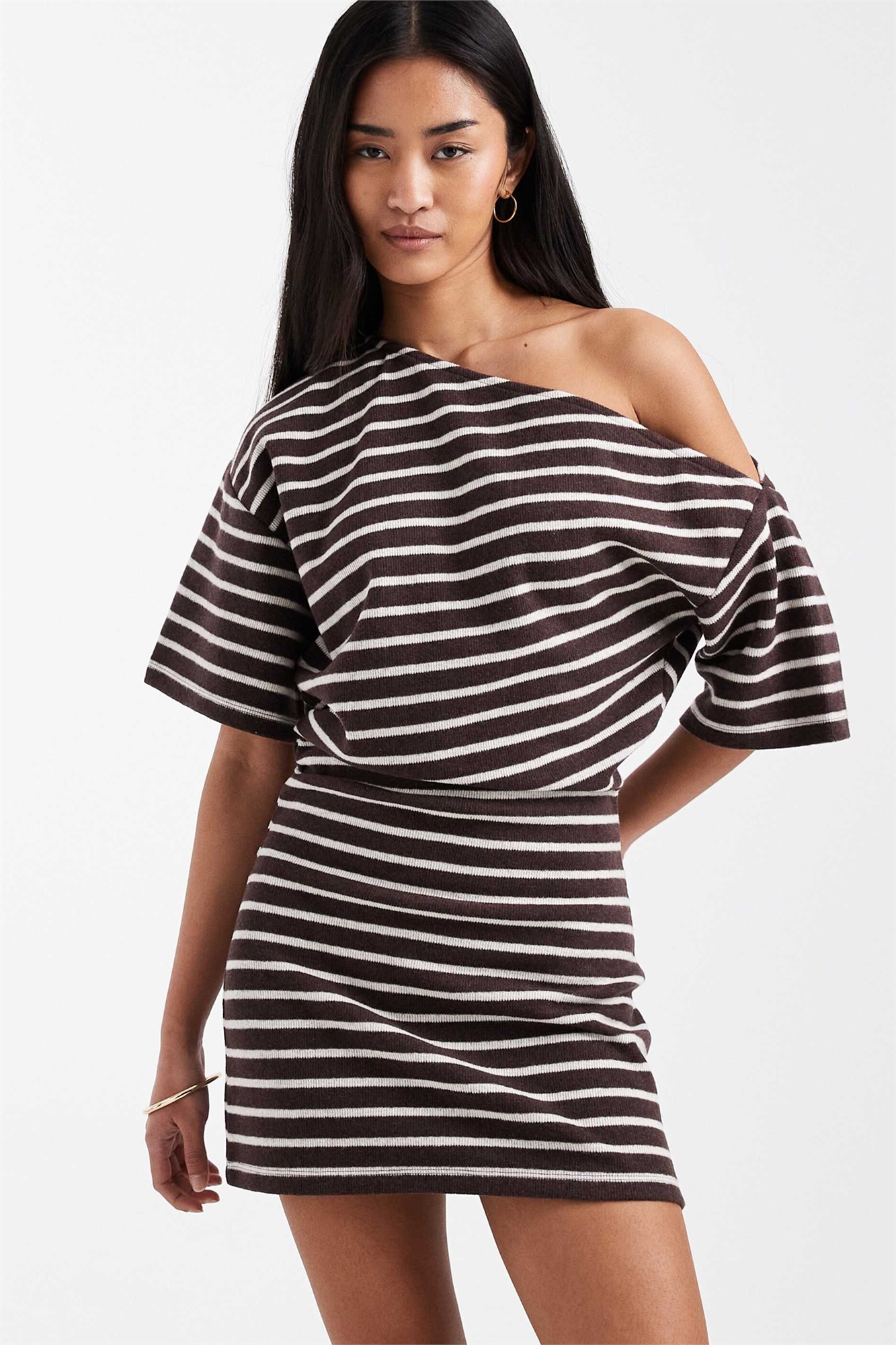Мини-платье с очень мягкими спущенными плечами и рукавами-крылышками