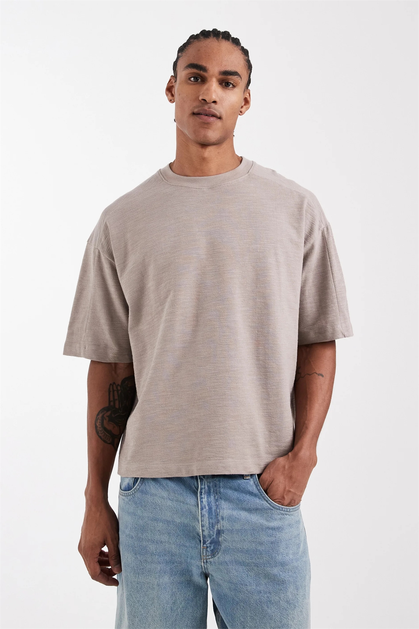 Объемная футболка прямого кроя с декоративными швами