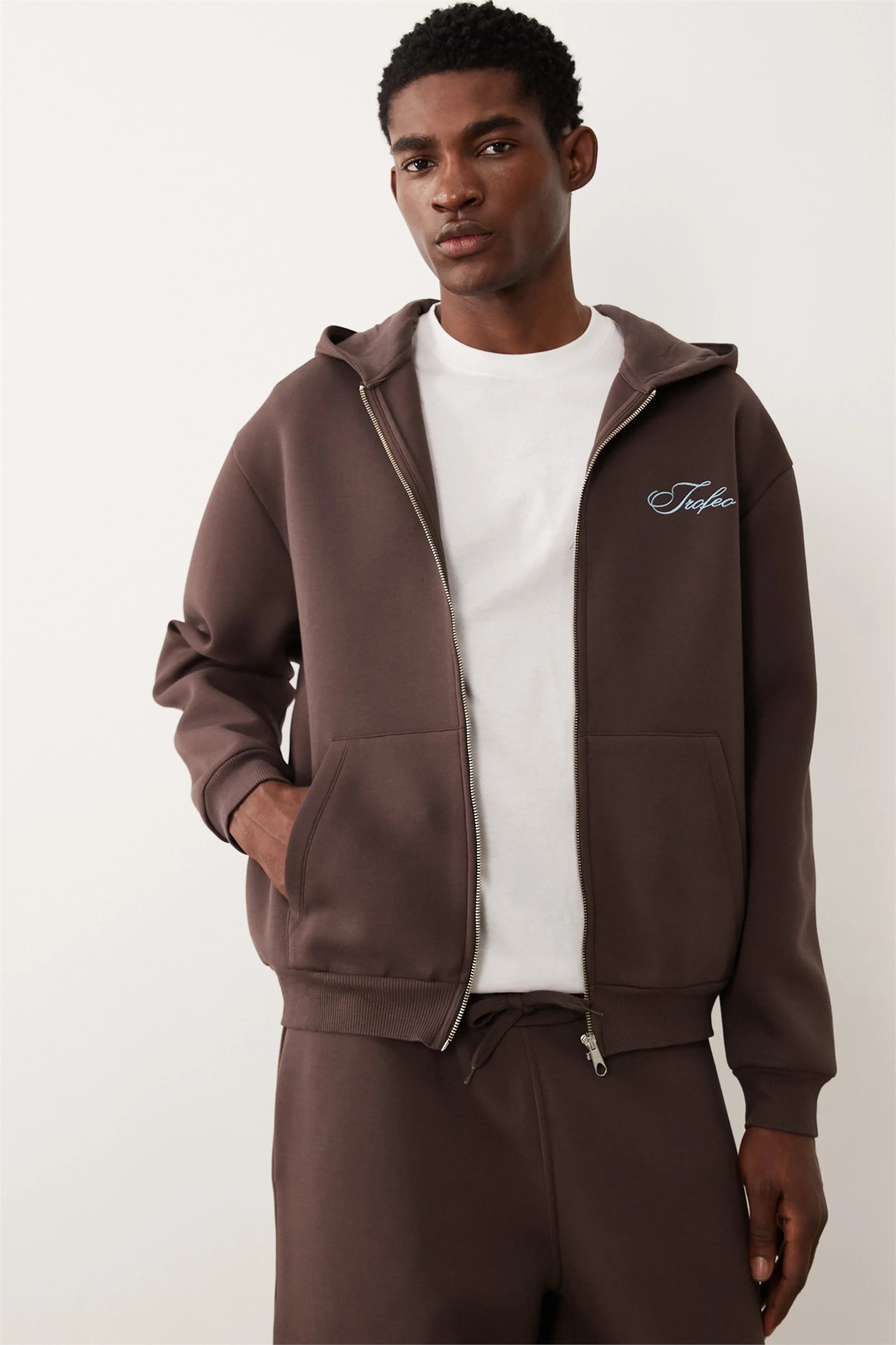 Свободная толстовка с капюшоном на молнии из ткани типа «скаба» с вышивкой co-ord