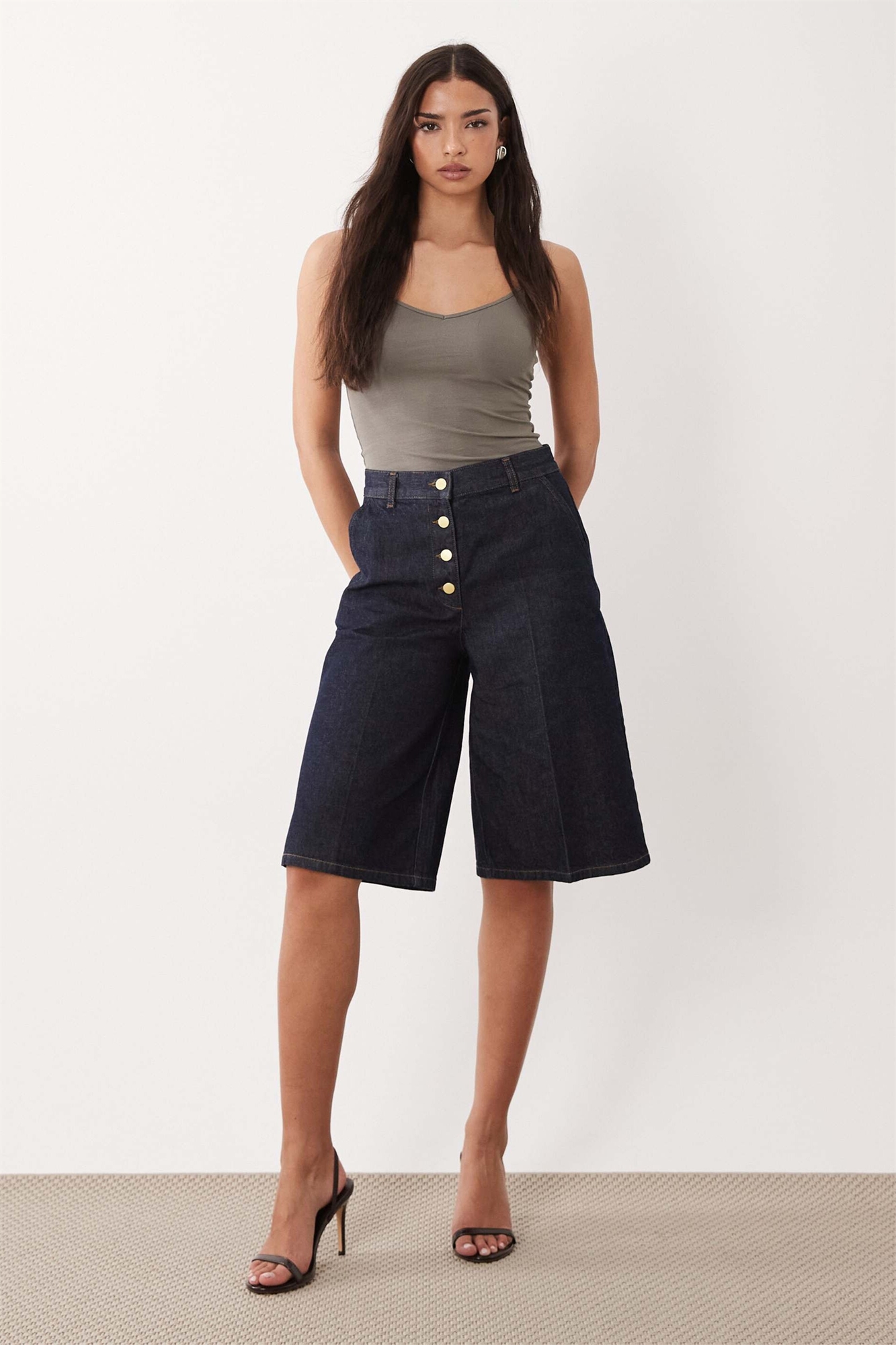 Бермуды из джинсовой ткани с широкими брючинами и золотой пуговицей