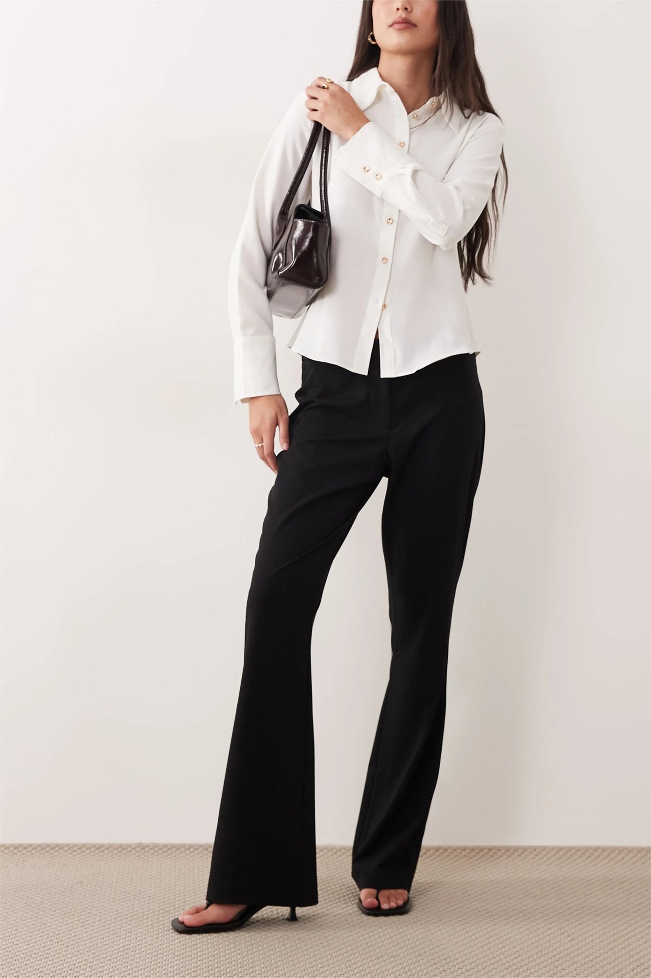 Брюки средней посадки с зауженным кроем и расклешенными штанинами