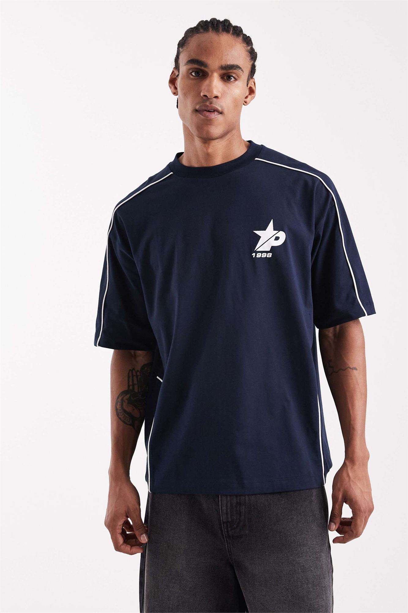 Футболка свободного кроя с принтом на груди и окантовкой co-ord