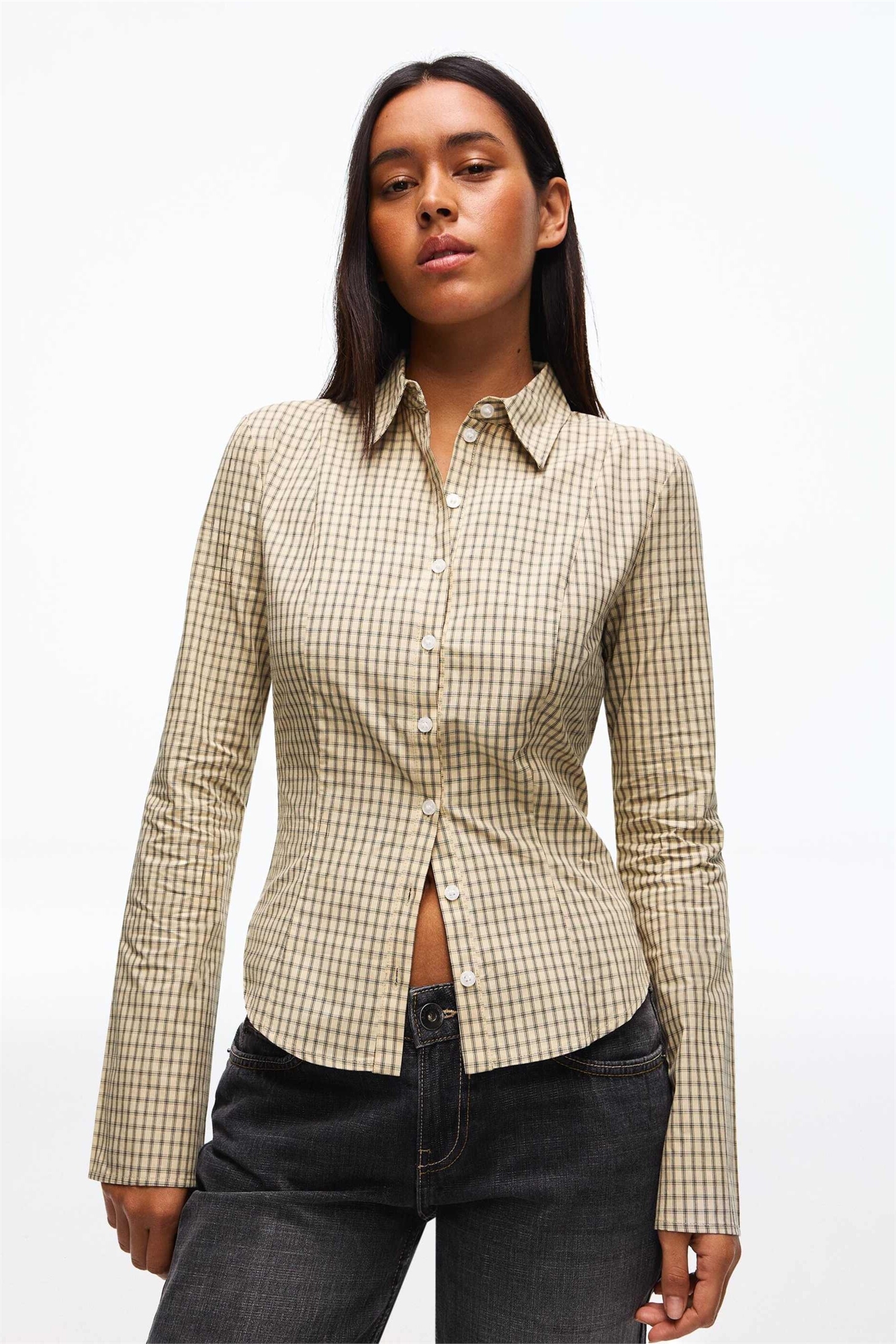 Рубашка с зауженным кроем и расклешенными рукавами