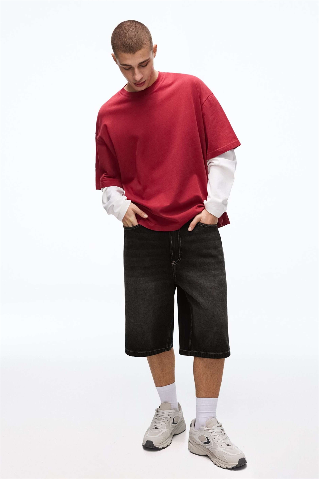 Шорты-бермуды из джинсовой ткани свободного кроя