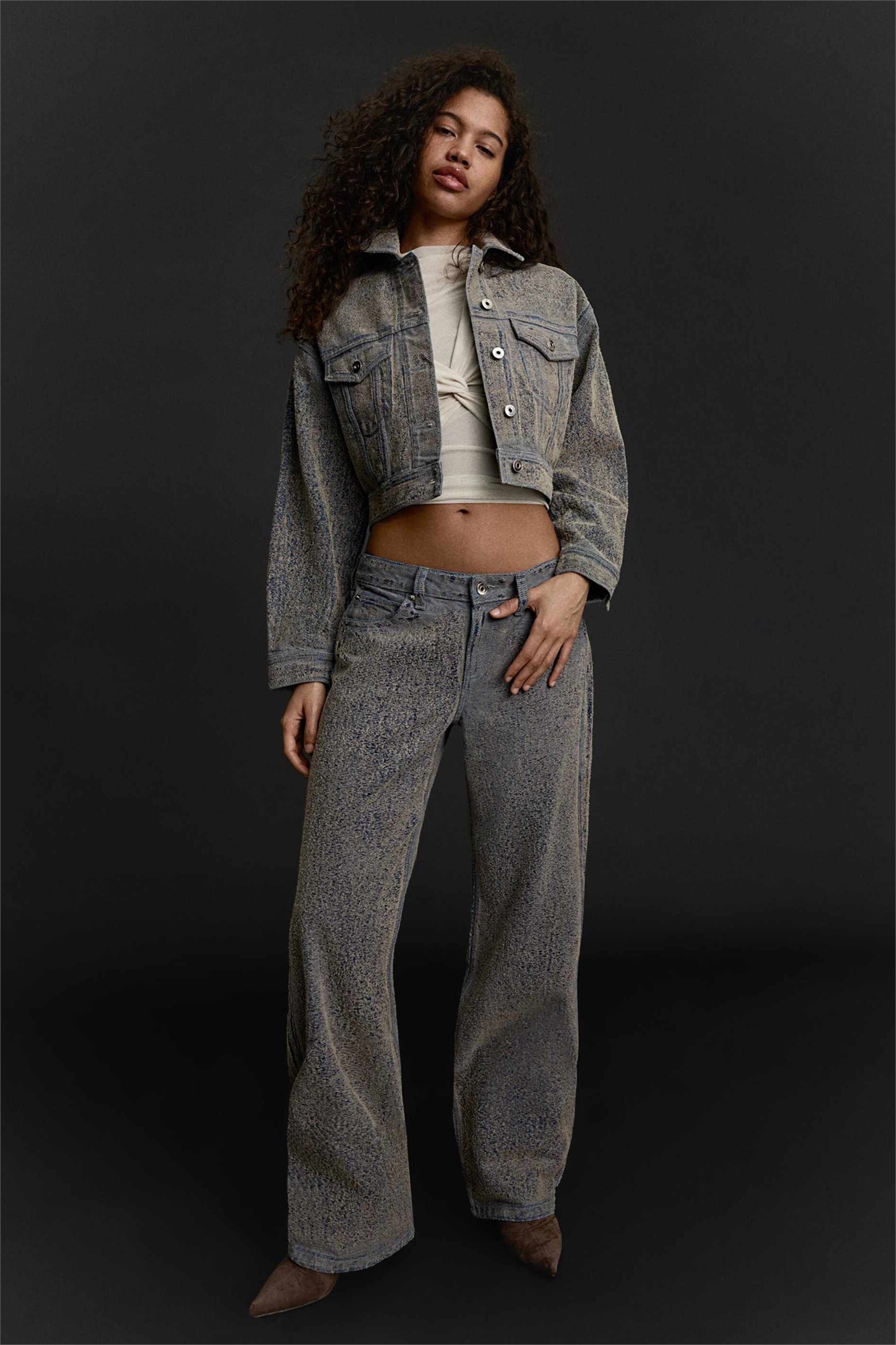 Джинсы с текстурированной поверхностью, низкой посадкой и прямыми брючинами