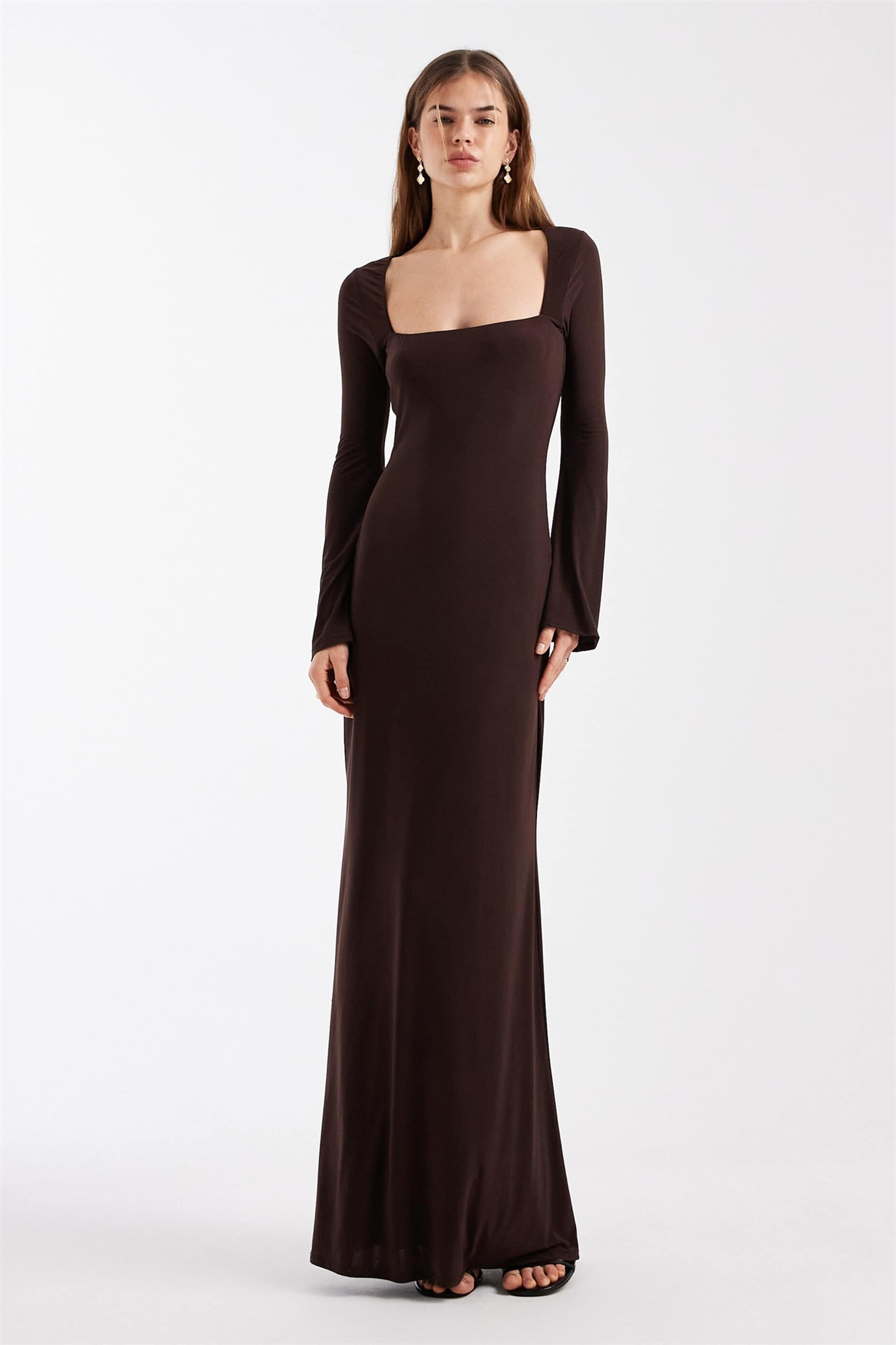 Макси-платье с широким квадратным вырезом и мягкой текстурой