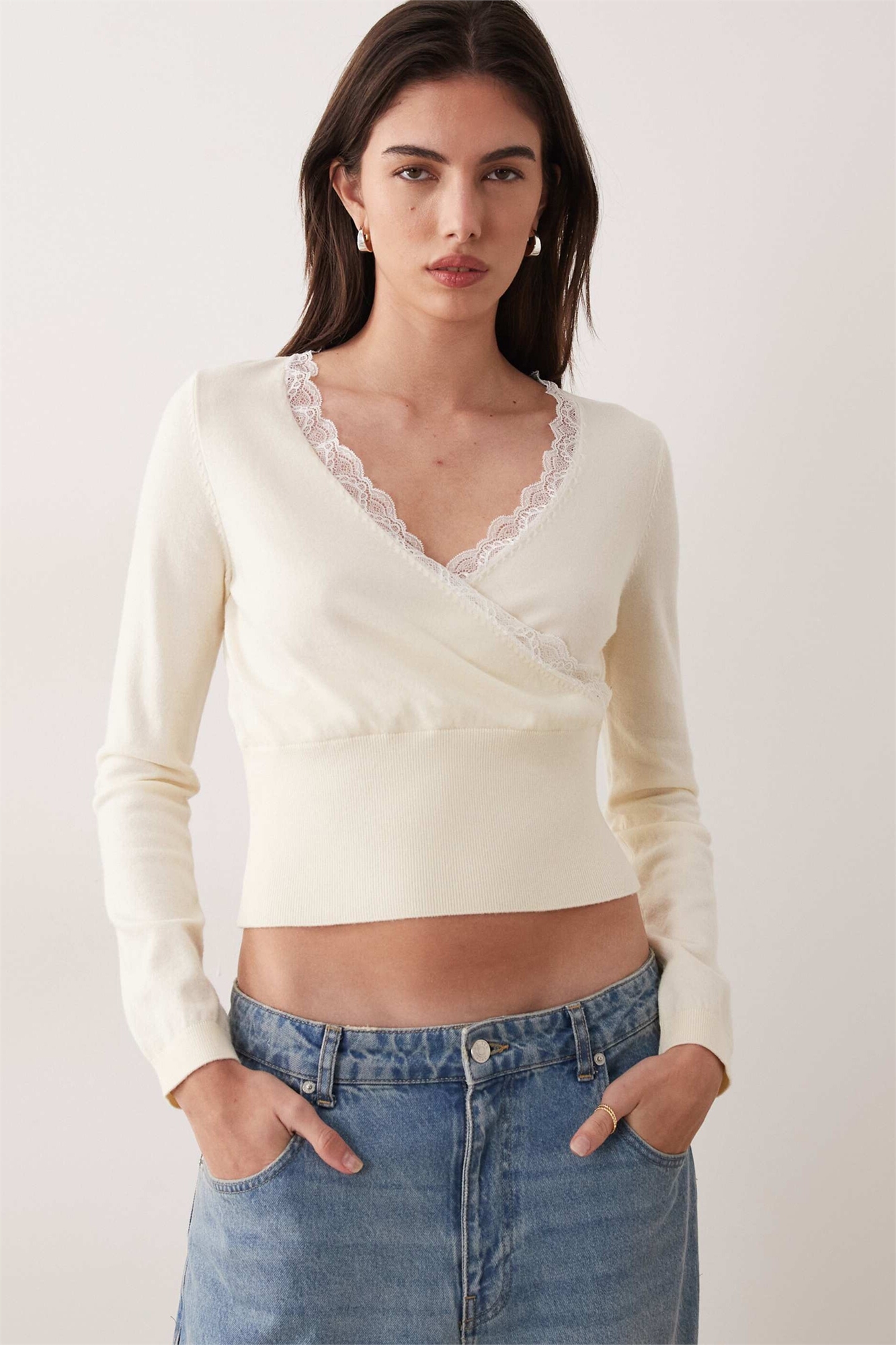 Топ-накидка из трикотажа с кружевной отделкой