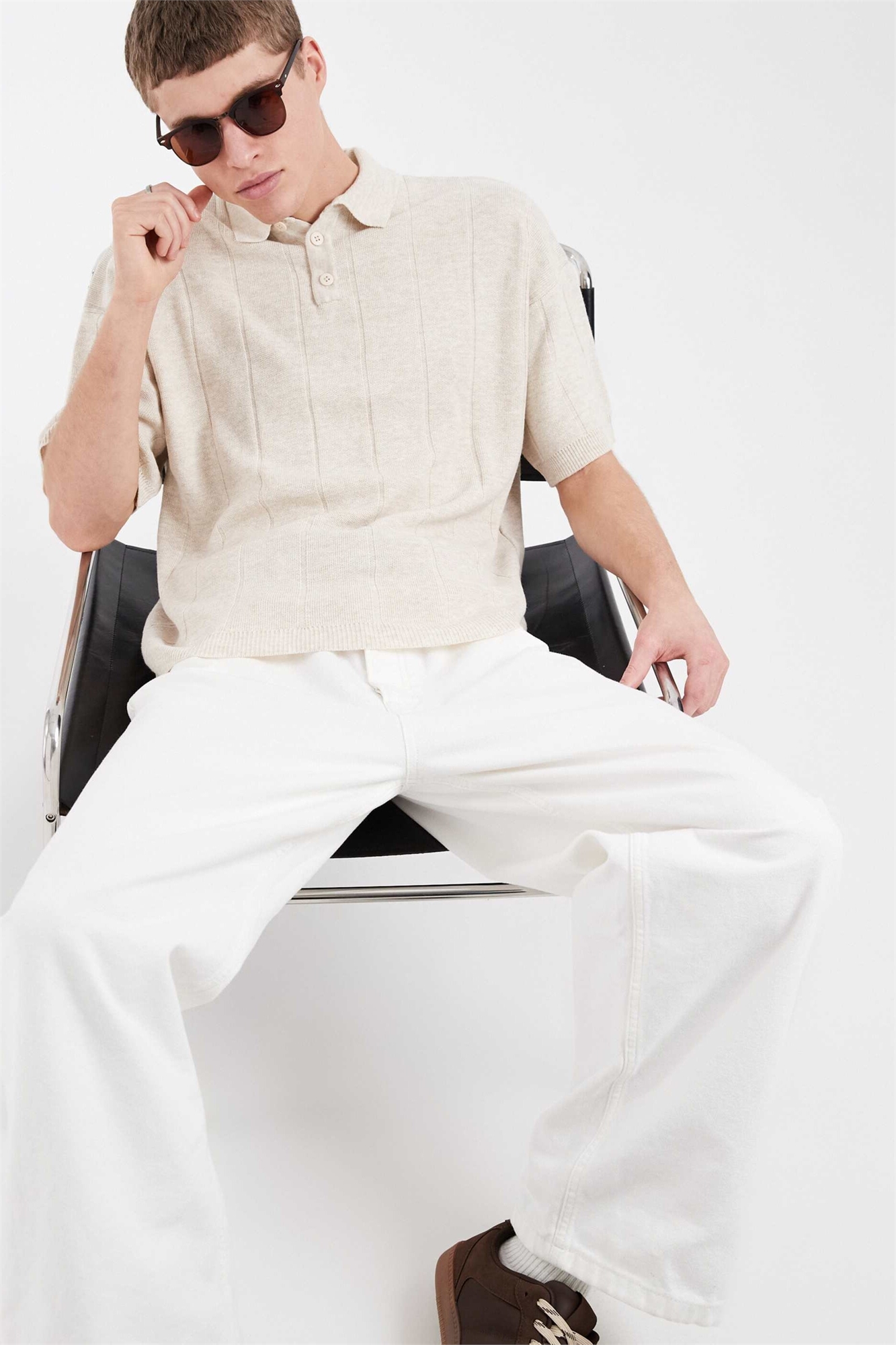 Поло с короткими рукавами из трикотажа с крупной ребристой вязкой