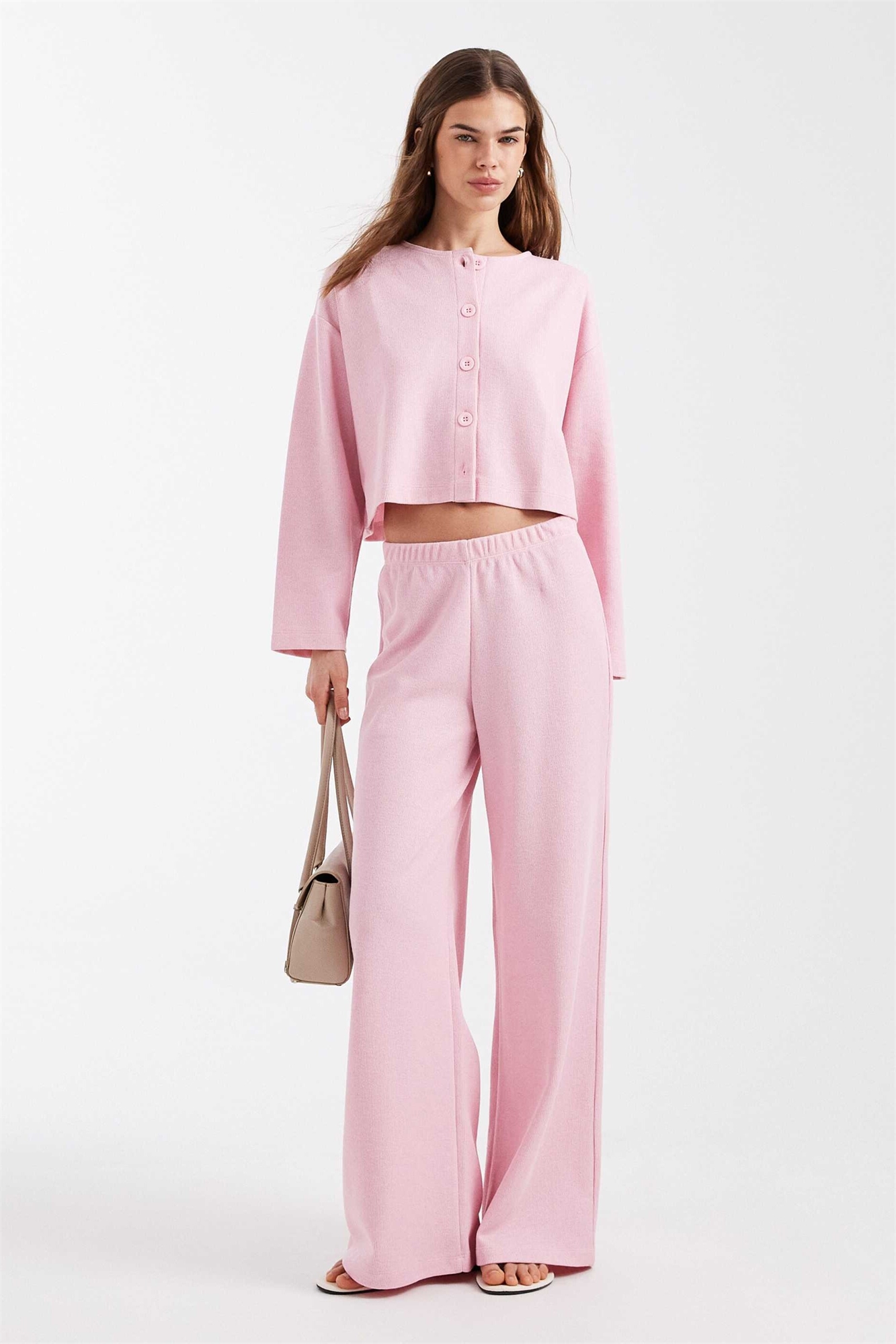 Мягкий кардиган с ребристой текстурой в розовом цвете