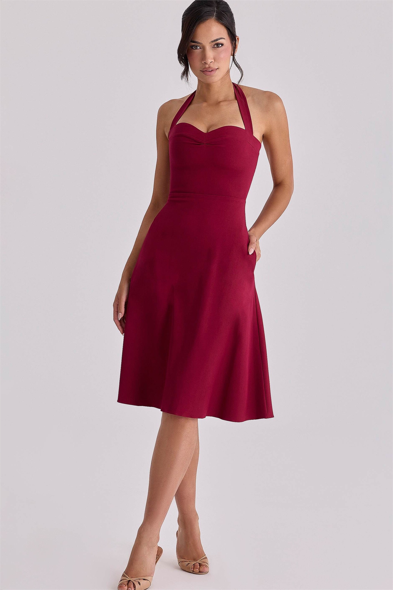 Платье средней длины с завязками на шее из мягкого твила цвета «Каролла»