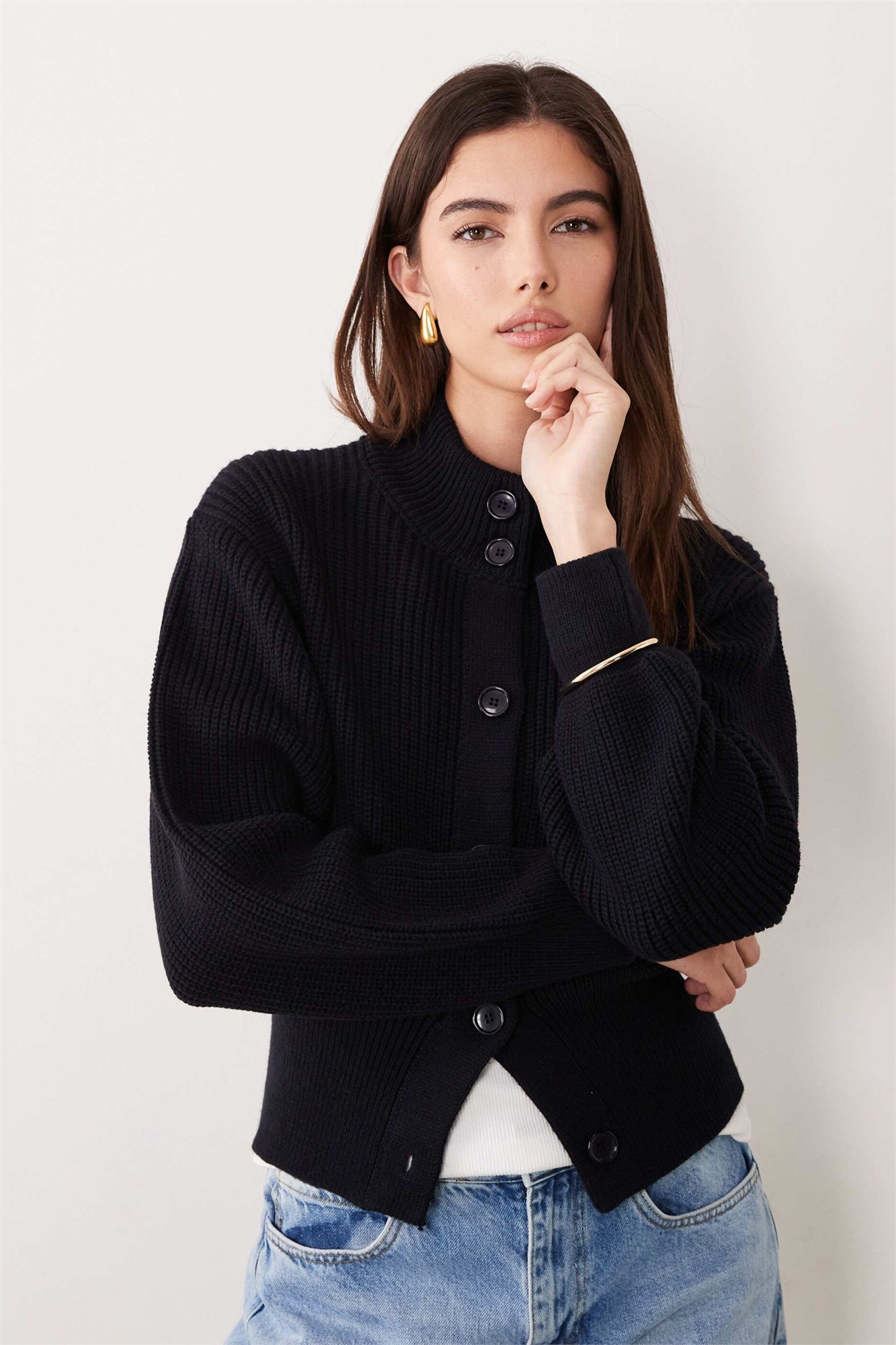 Вязаный кардиган с воротником-воронкой