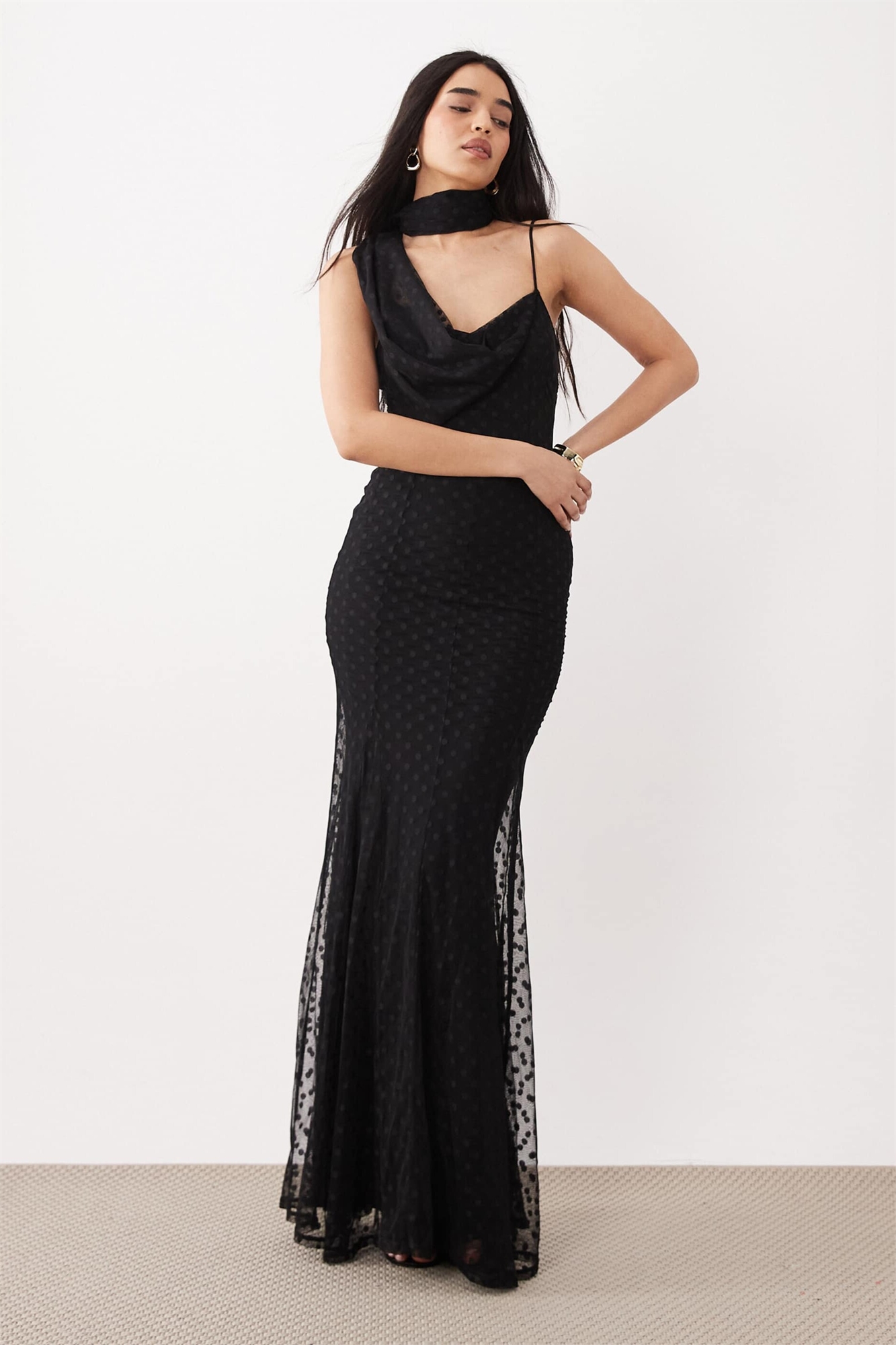 Макси-платье из сетчатой ткани с элементами в виде шарфа