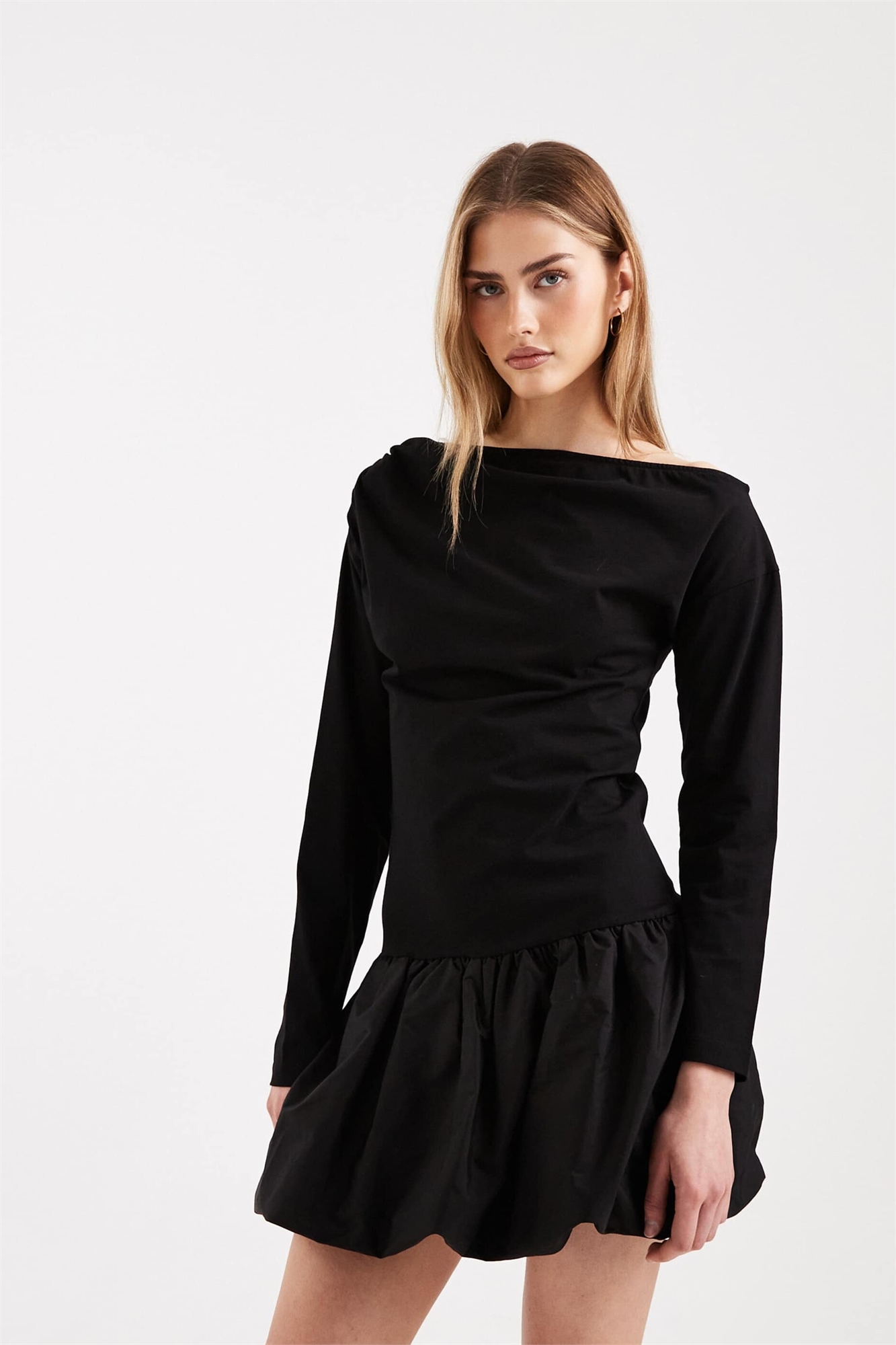 Мини-платье с заниженной линией плеч и юбкой-баллоном
