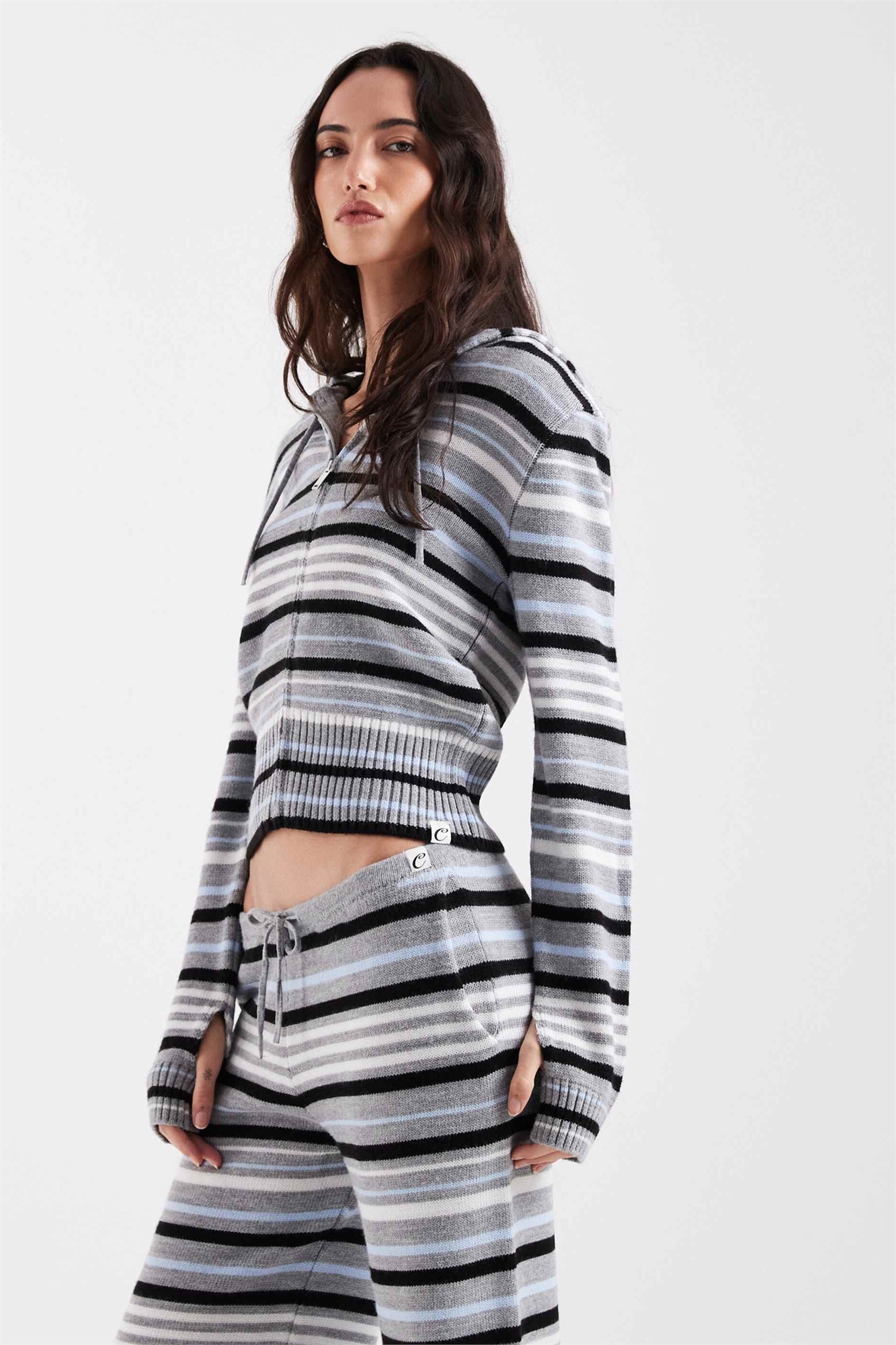 Свитшот с капюшоном, вязаный полосками, на молнии