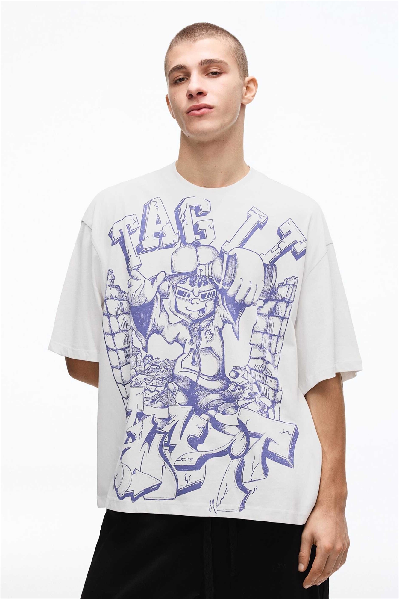 Футболка с короткими рукавами и принтом свободного кроя