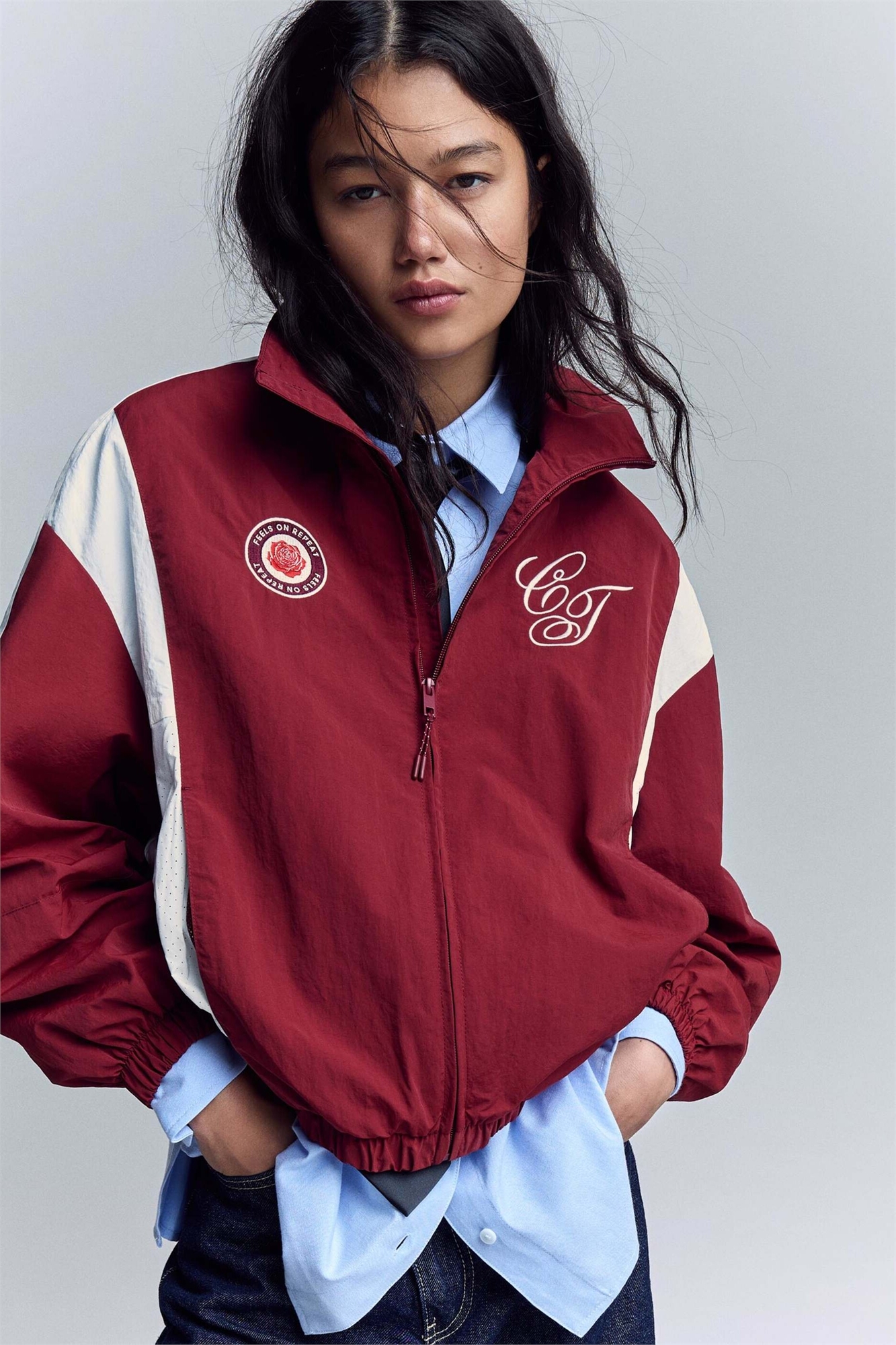 Легкая вышитая куртка бордового цвета