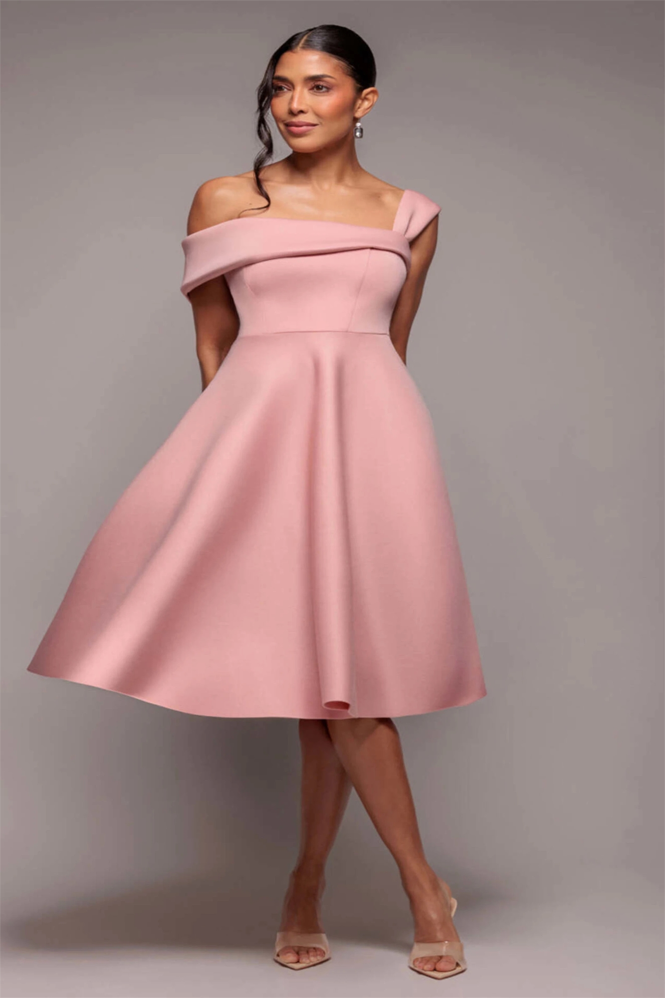 Платье средней длины с одним плечом